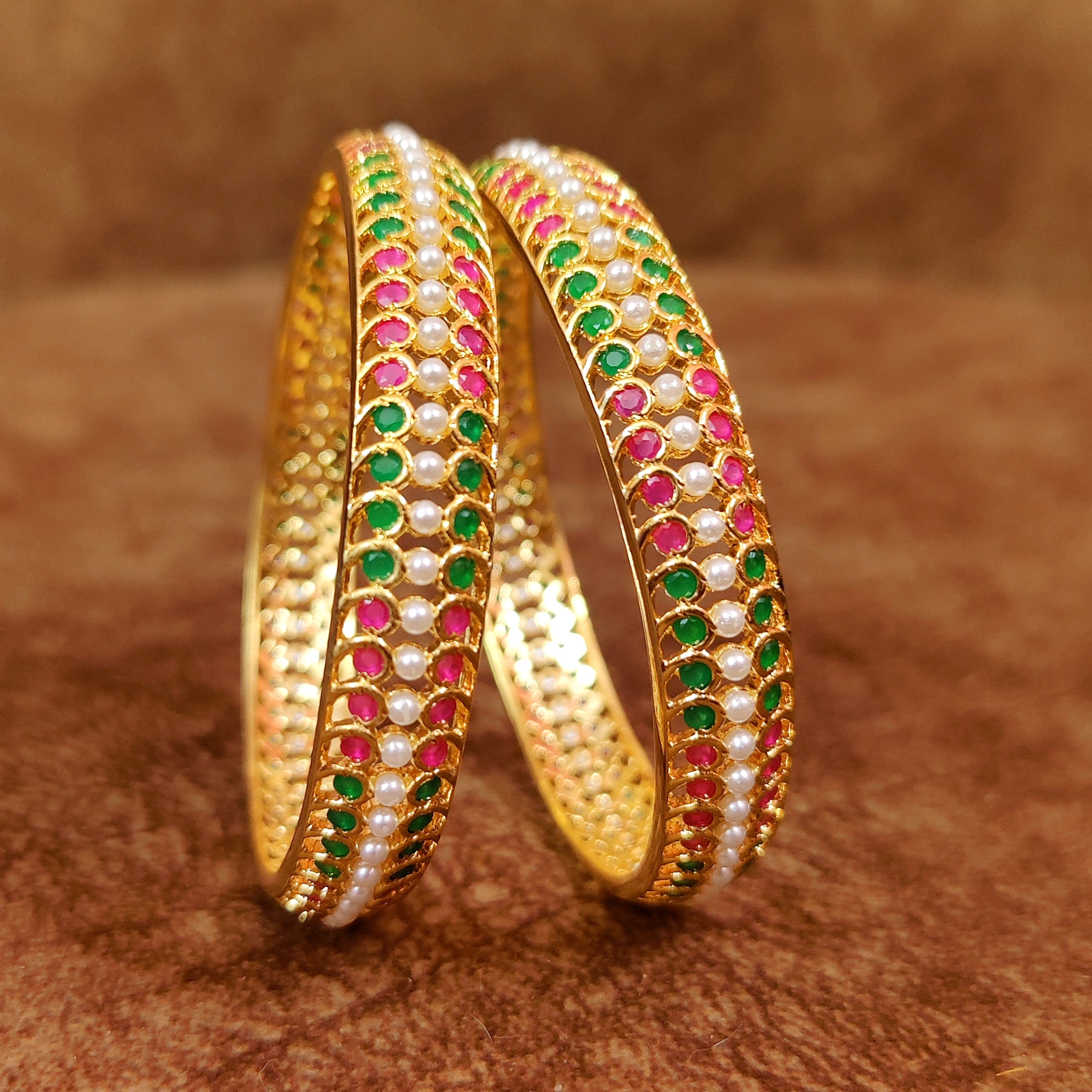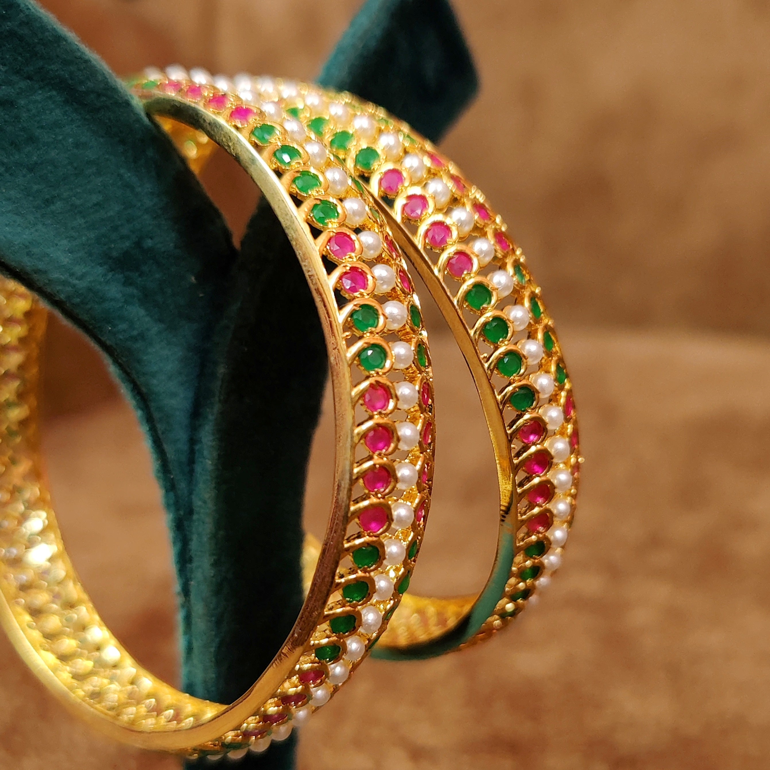 MUTICOLOUR SEMI-PRECIOUS PEARL STONE STUDDED GOLD BANGLES