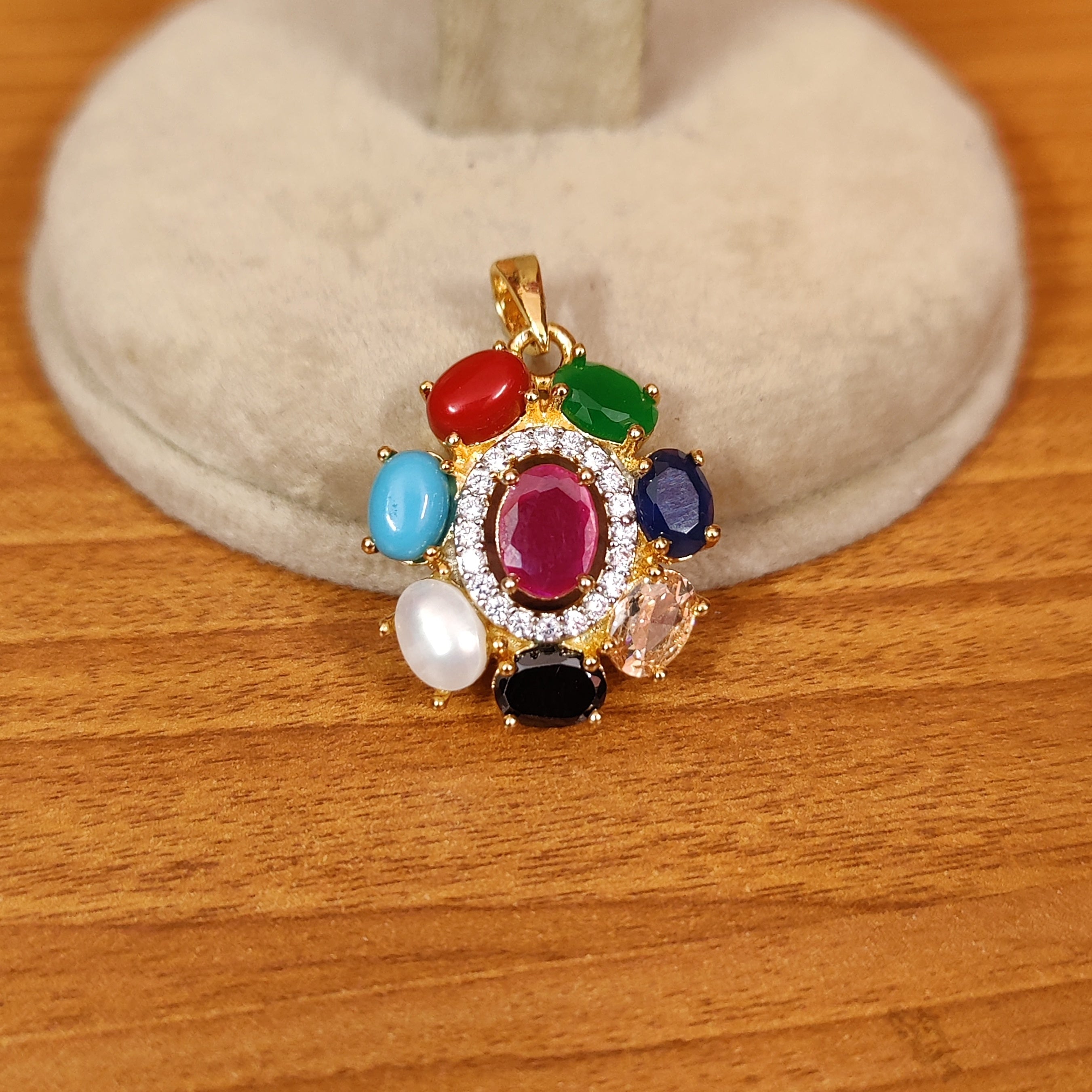 NAVRATAN LOOK OVAL PENDANT WITH CHAIN