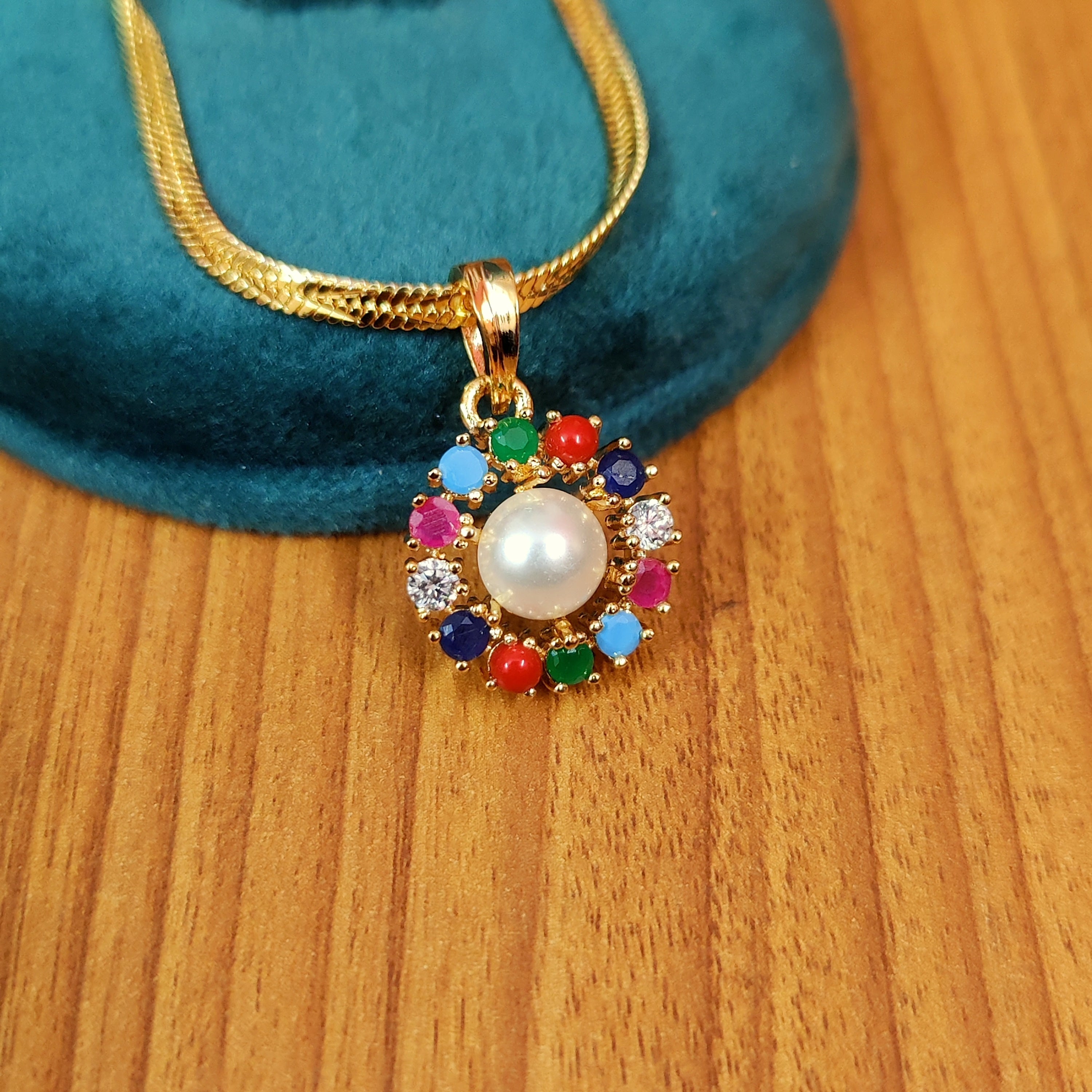 NAVRATANA STONES ROUND PENDANT WITH CHAIN