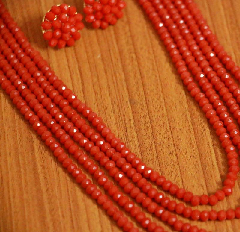 This Necklace Is Handcrafted In Crystal Beads Of Orange Colour Matched With Orange Colour Tops. The Necklace Set Includes An Ajdustable Dori Which Makes It Easier To Adjust Length Of The Necklace.