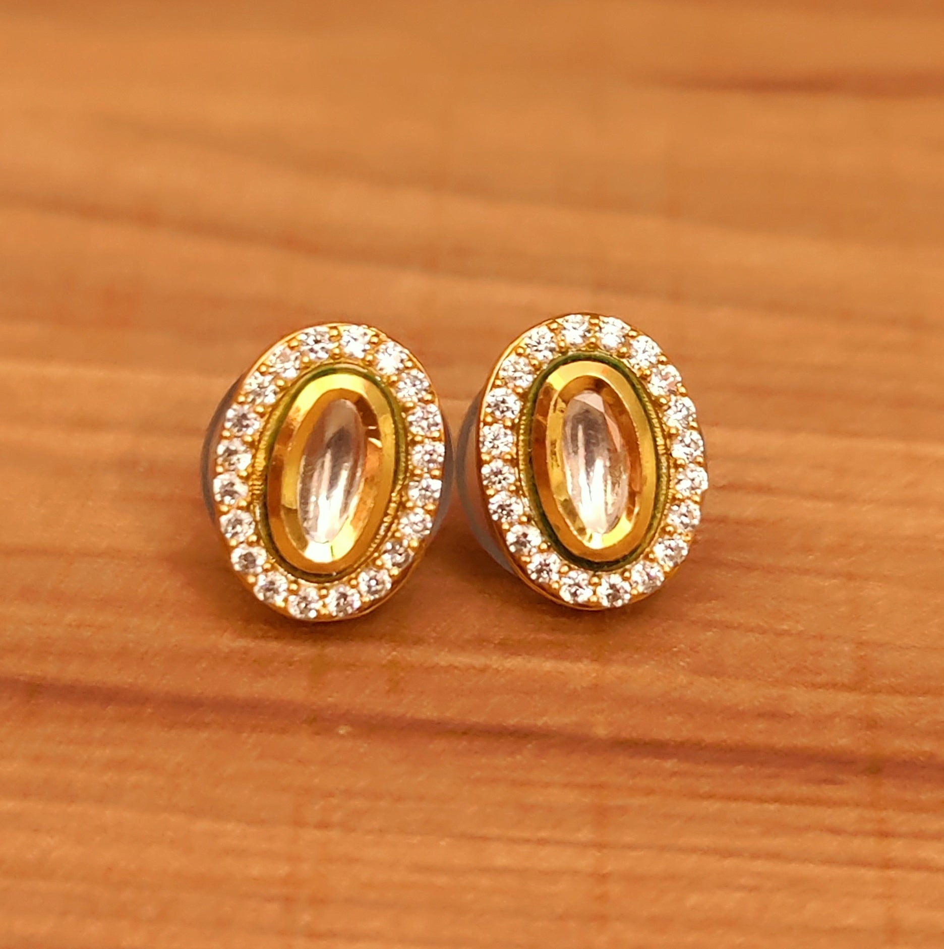 OVAL SHAPED KUNDAN MEENAKARI CZ STUDS