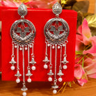OXIDISED SILVER LOOK DANGLING PEARL LONG EARRINGS