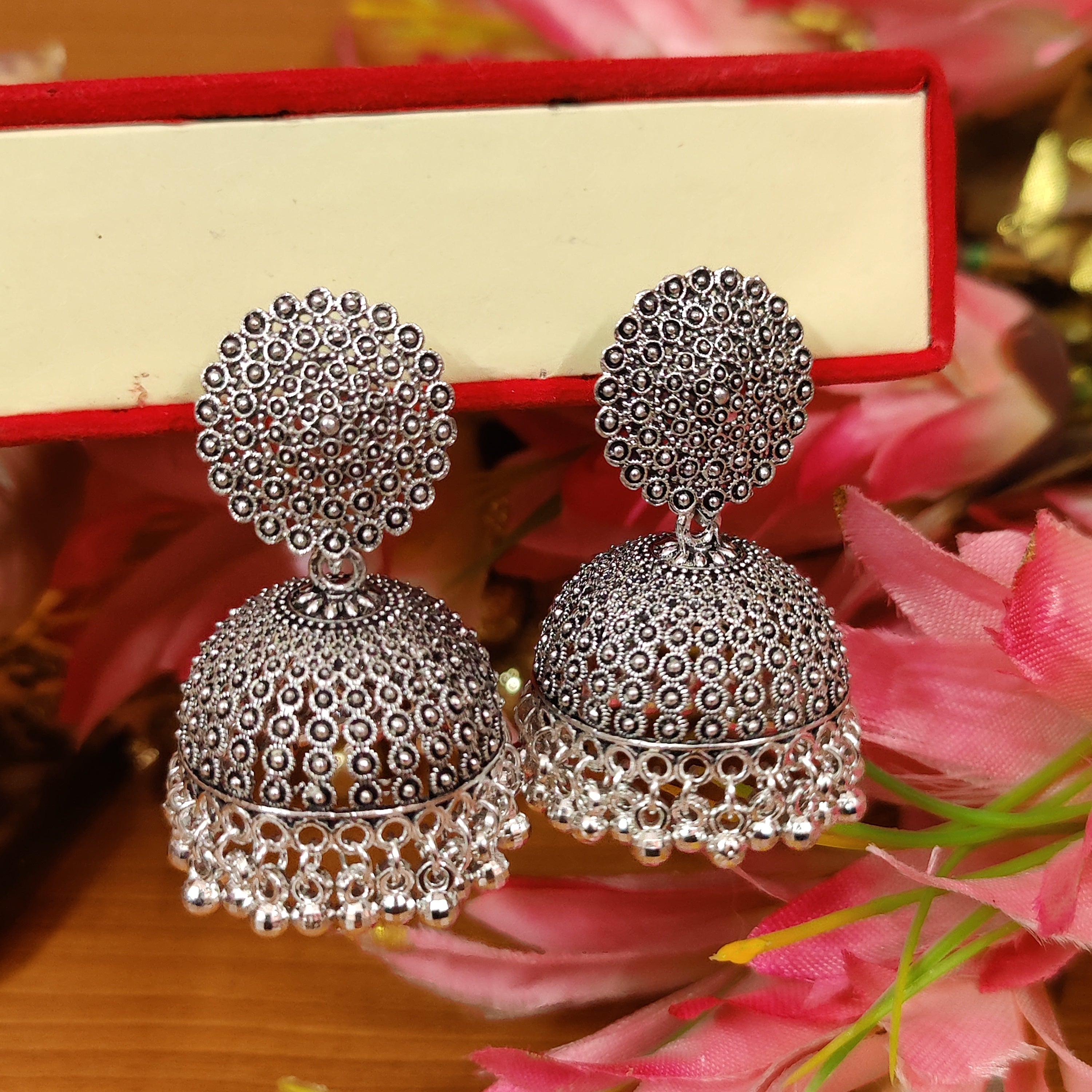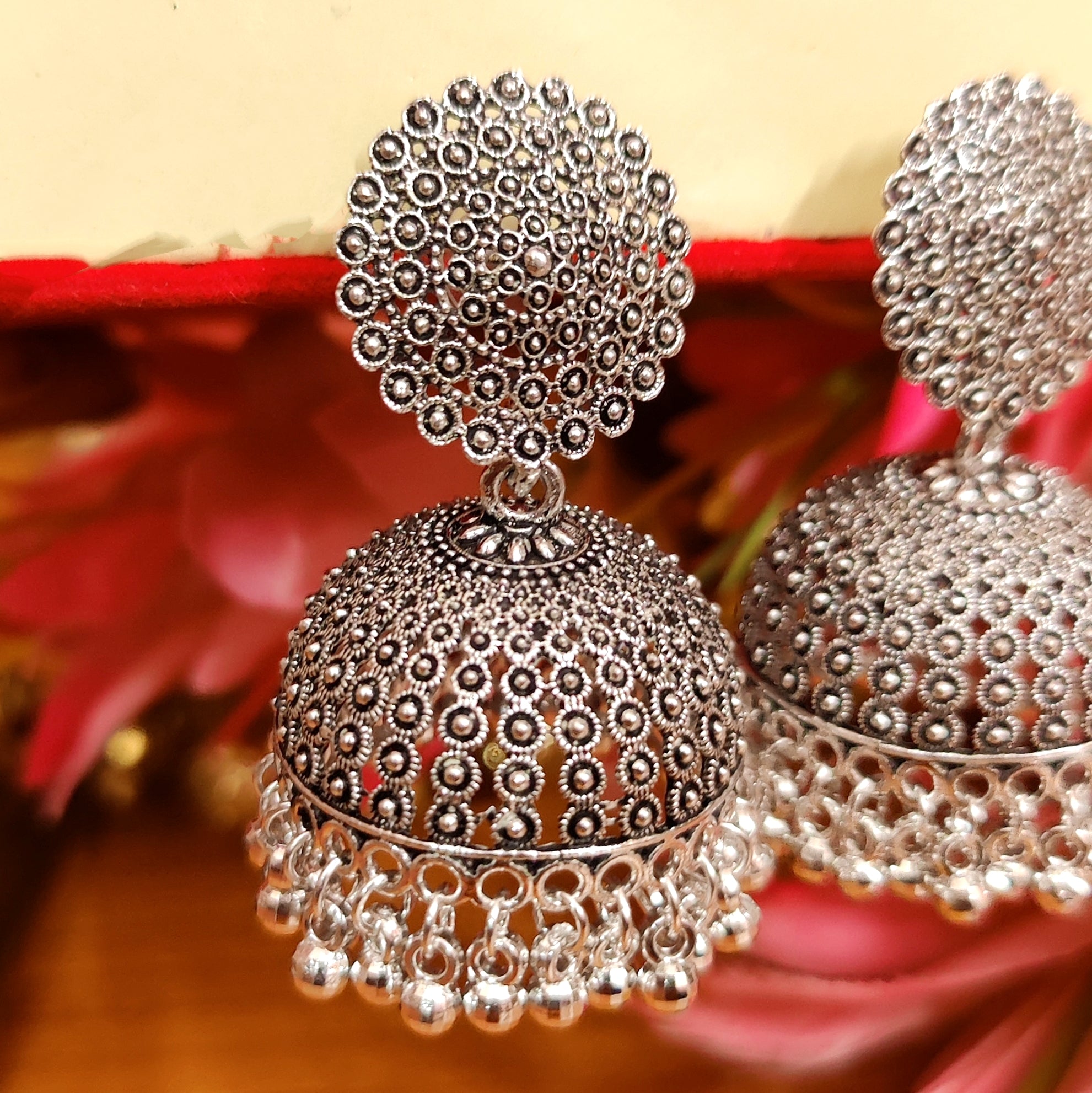 OXIDISED SILVER LOOK ETHNIC JHUMKA'S