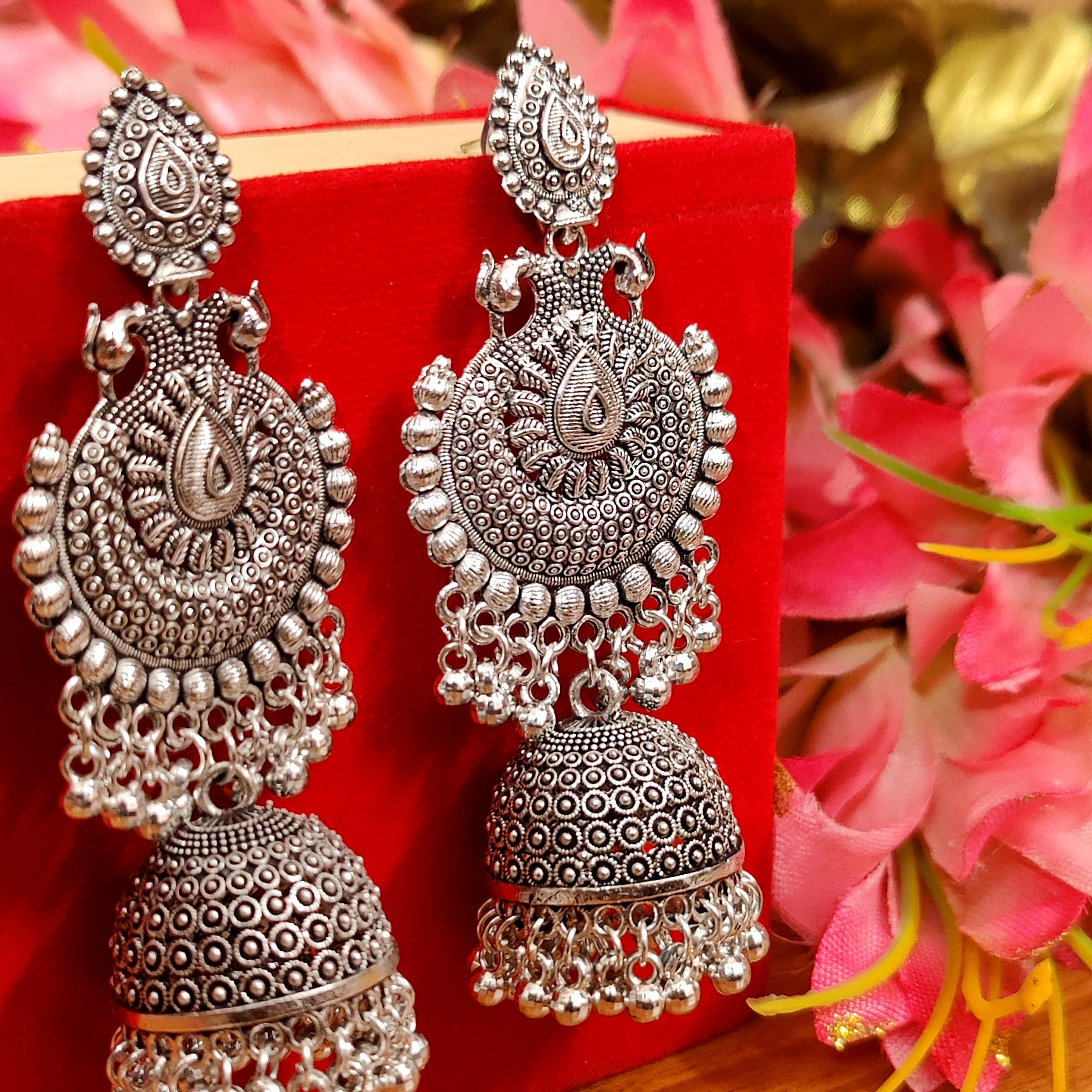 OXIDISED SILVER LOOK TRADITIONAL PEACOCK JHUMKA'S