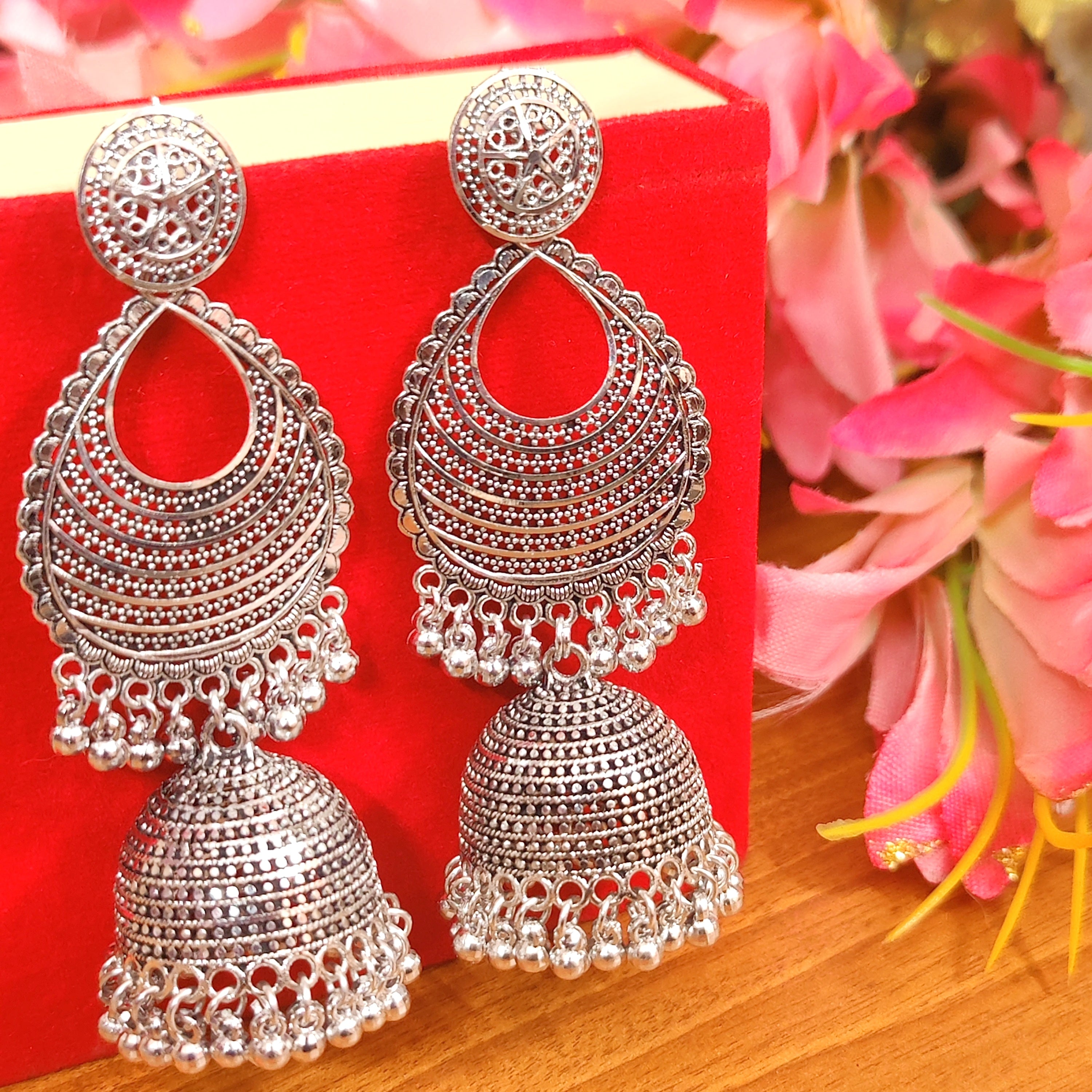 OXIDISED SILVER PARTY WEAR LONG JHUMKA'S