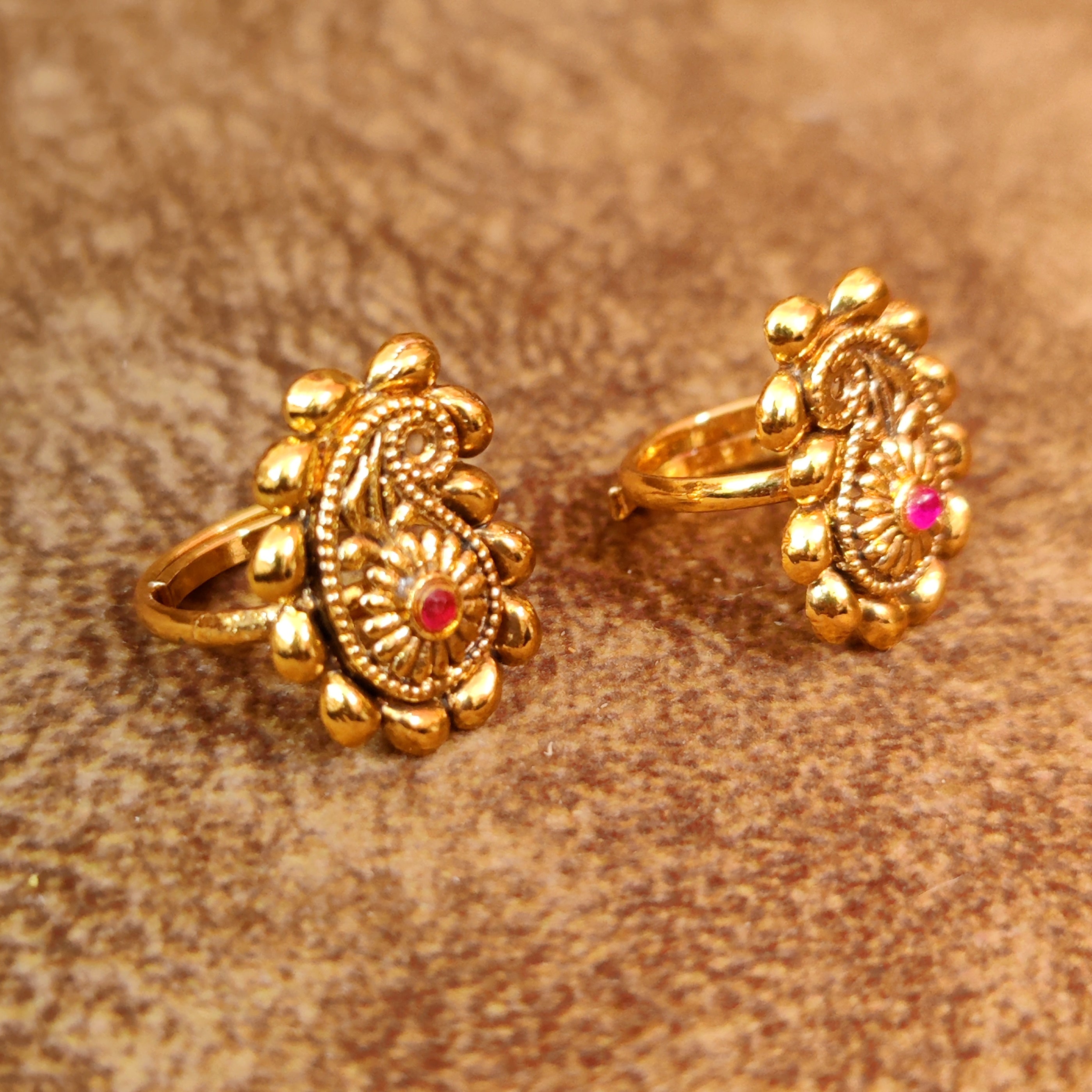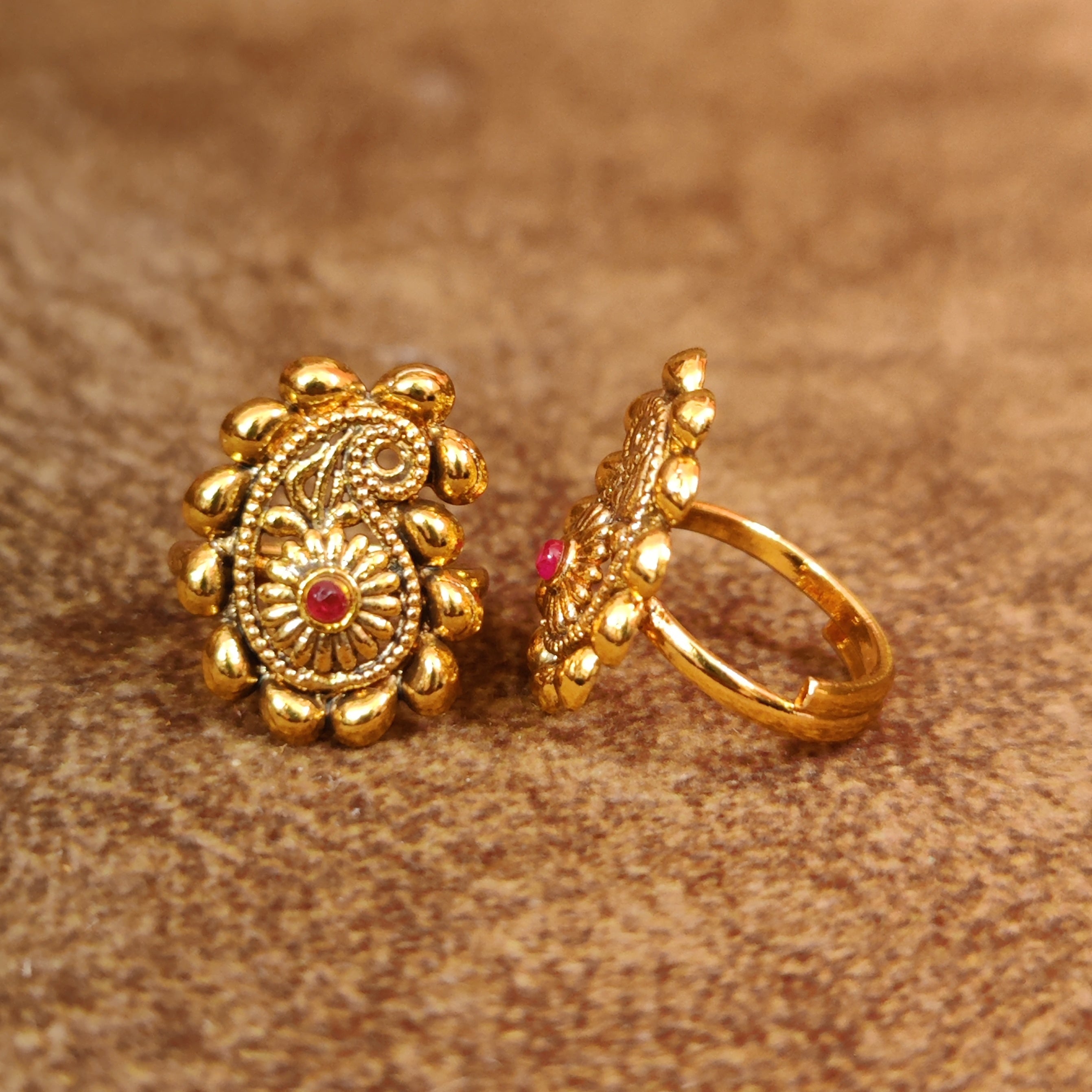 Enhance your elegance with this Paisley Pattern Gold Plated Red Adjustable Ring, a perfect blend of tradition and style. Featuring an intricately designed paisley motif, this stunning ring is adorned with a vibrant red stone that adds a royal touch. The gold-plated finish enhances its antique charm, while the adjustable band ensures a comfortable fit for all. Ideal for festive occasions, weddings, or everyday wear, this timeless accessory is a must-have for your jewelry collection. Shop now and add a regal touch to your style!