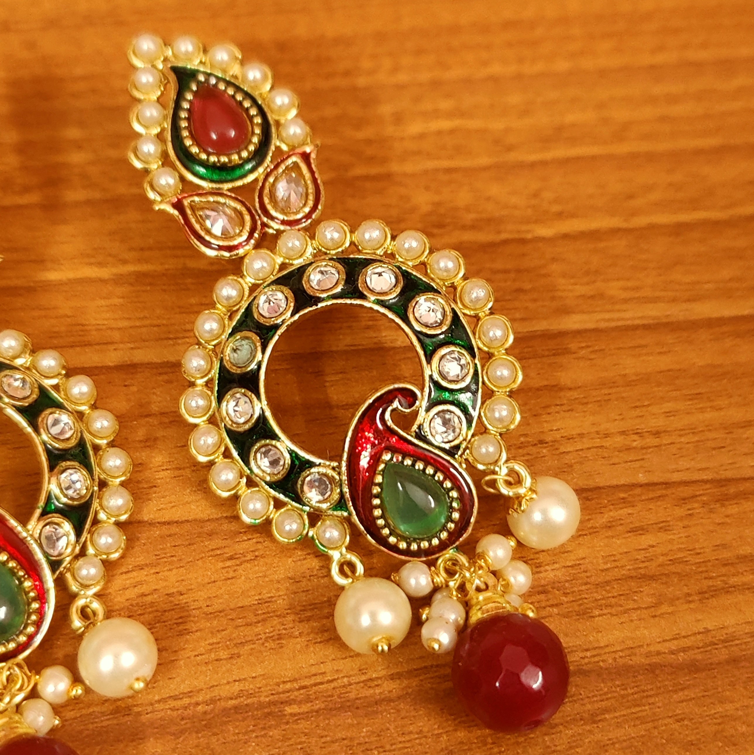 PAISLEY PATTERN MULTICOLOUR MEENAKARI POLKI EARRINGS
