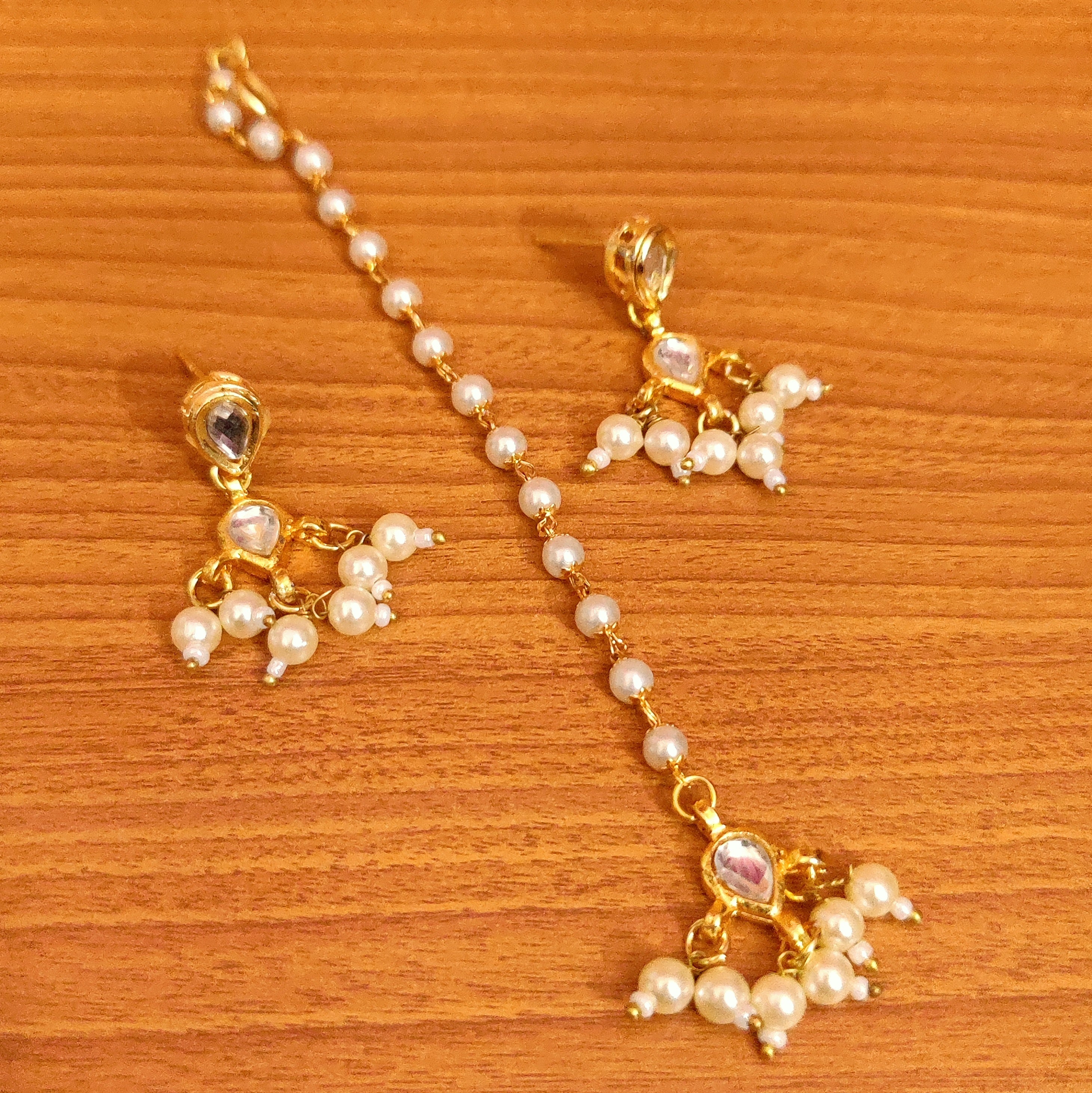 PEARL KUNDAN POLKI EARRINGS & TIKKA