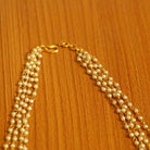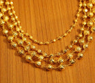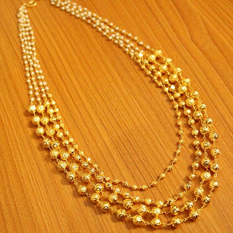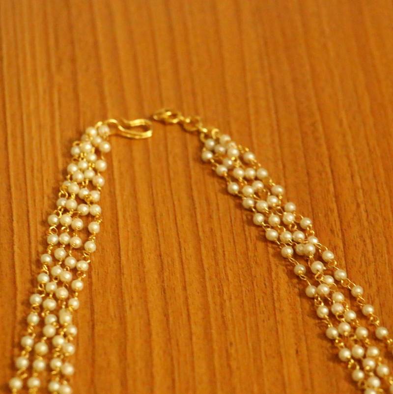 This beautiful necklace is handcrafted in copper alloy with imitation semi pearls & polki work of very fine quality . This necklace is coated with 18 kt gold polish which give them a unique look . An absolutely stunning piece to own and are very light in weight.