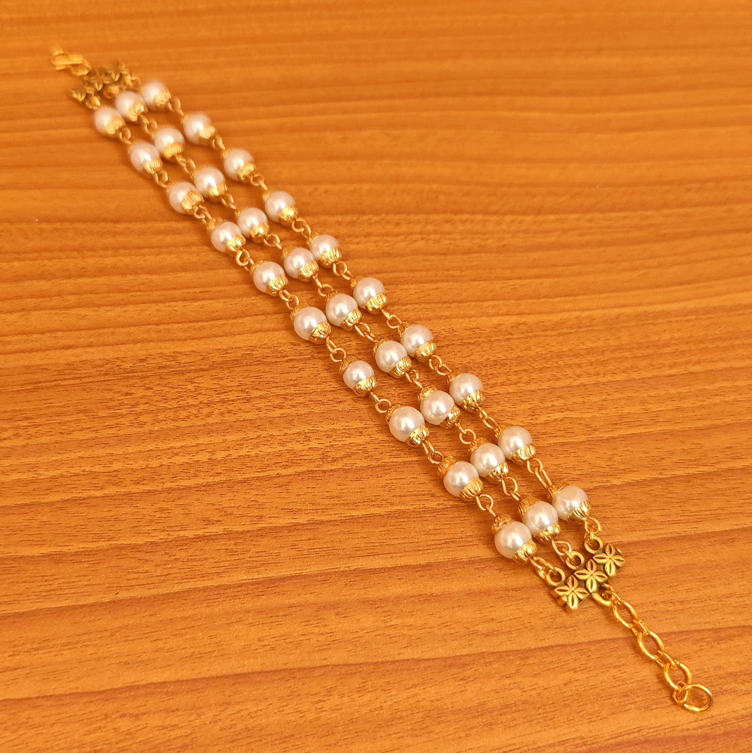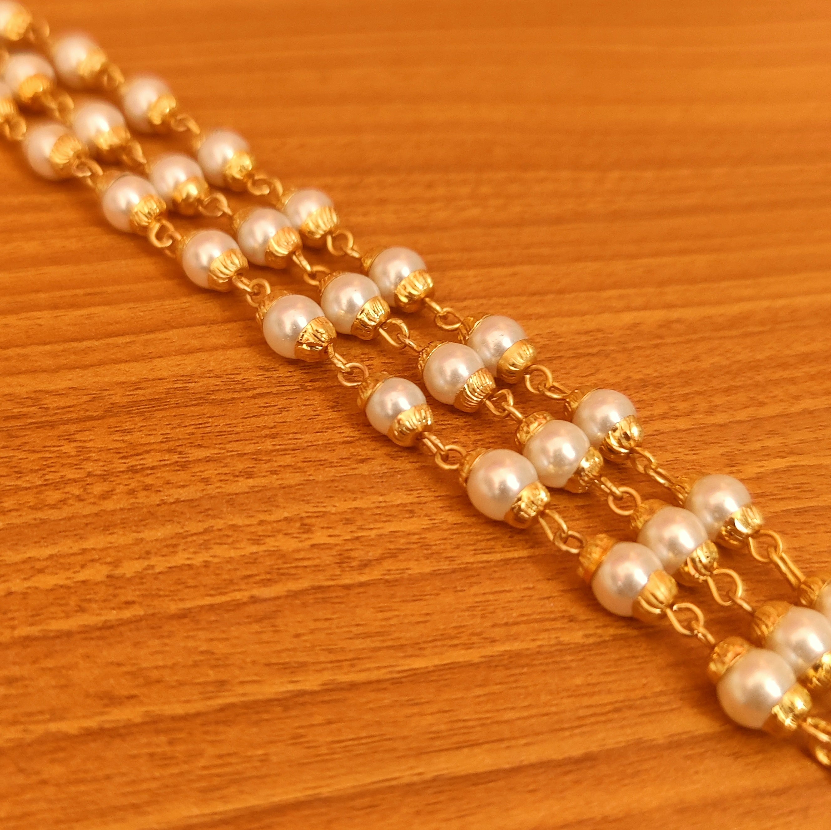 PEARL CAP GOLD PLATED 3 LINE BRACELET