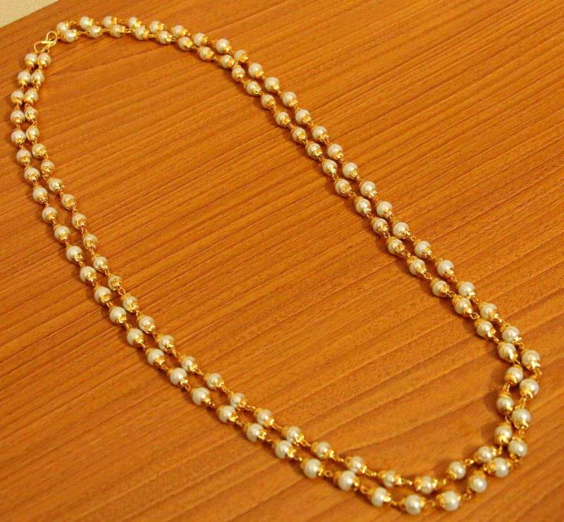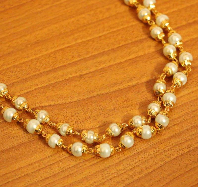 This beautiful necklace is handcrafted in copper alloy with imitation pearls and polki work of very fine quality . This necklace is coated with 18 kt gold polish which give them a unique look . An absolutely stunning piece to own and are very light in weight.