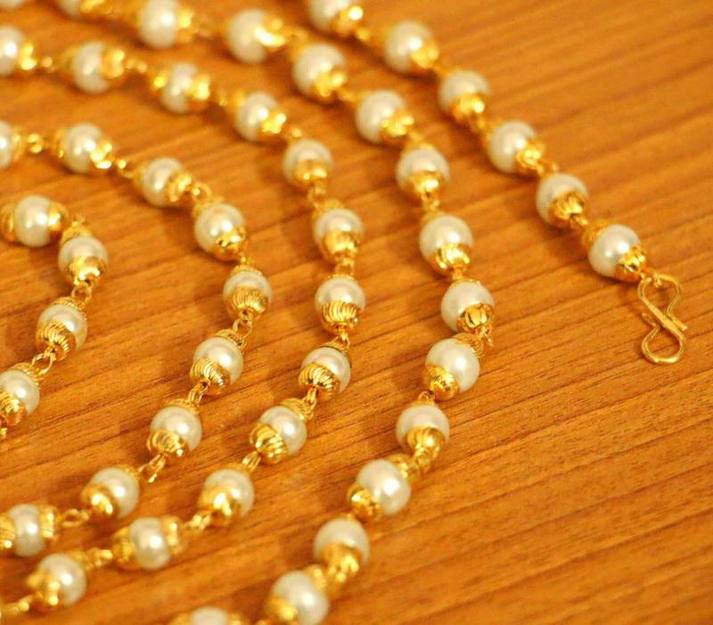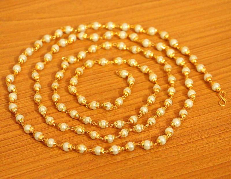 This beautiful necklace is handcrafted in copper alloy with imitation pearls and polki work of very fine quality . This necklace is coated with 18 kt gold polish which give them a unique look . An absolutely stunning piece to own and are very light in weight.
