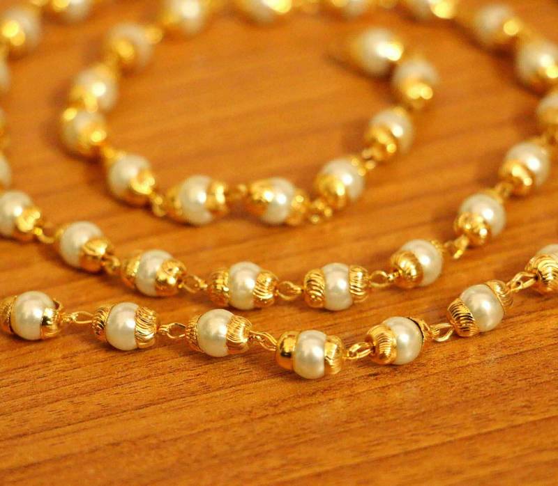 This beautiful necklace is handcrafted in copper alloy with imitation pearls and polki work of very fine quality . This necklace is coated with 18 kt gold polish which give them a unique look . An absolutely stunning piece to own and are very light in weight.