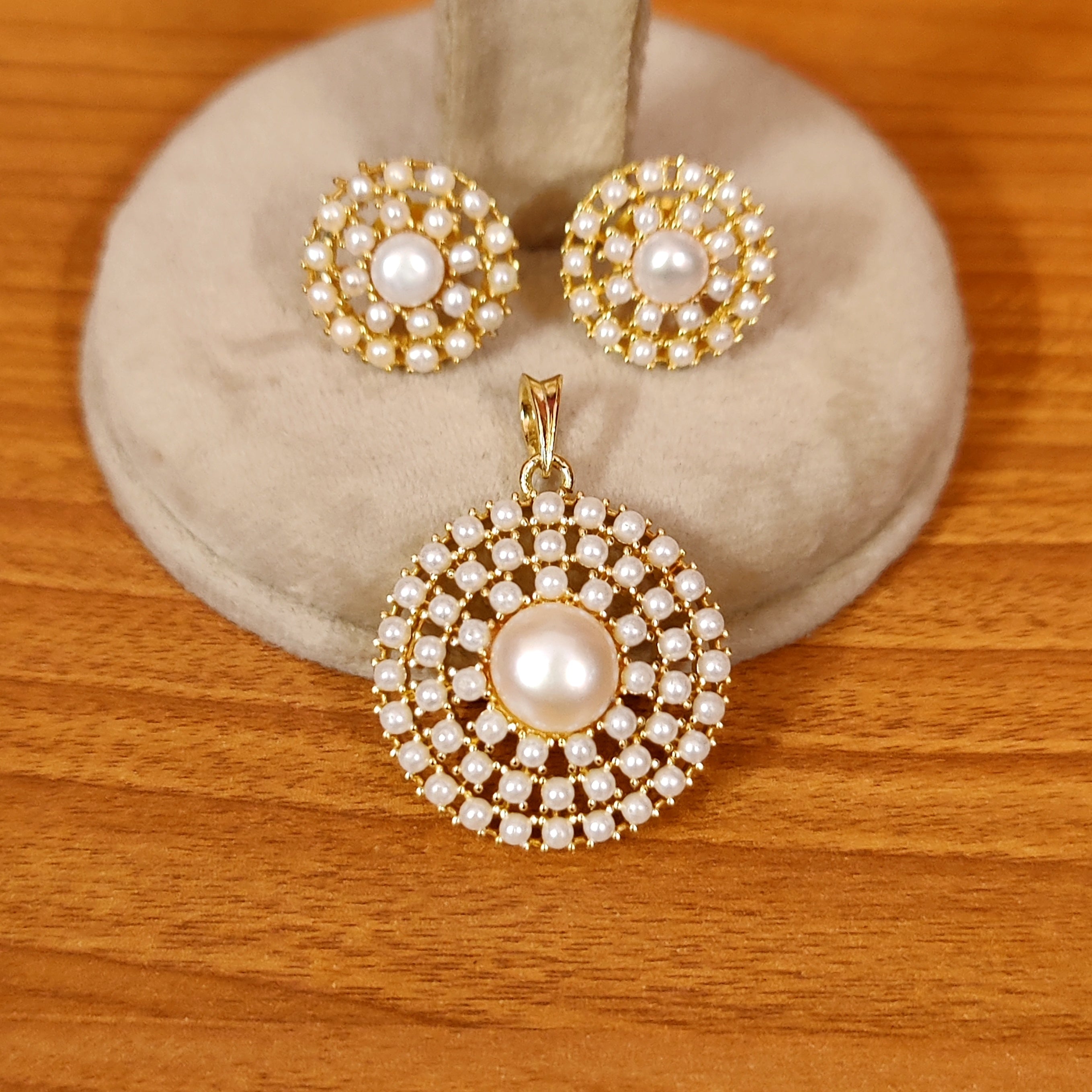 PEARL STUDDED ROUND SHAPED PENDANT SET WITH CHAIN