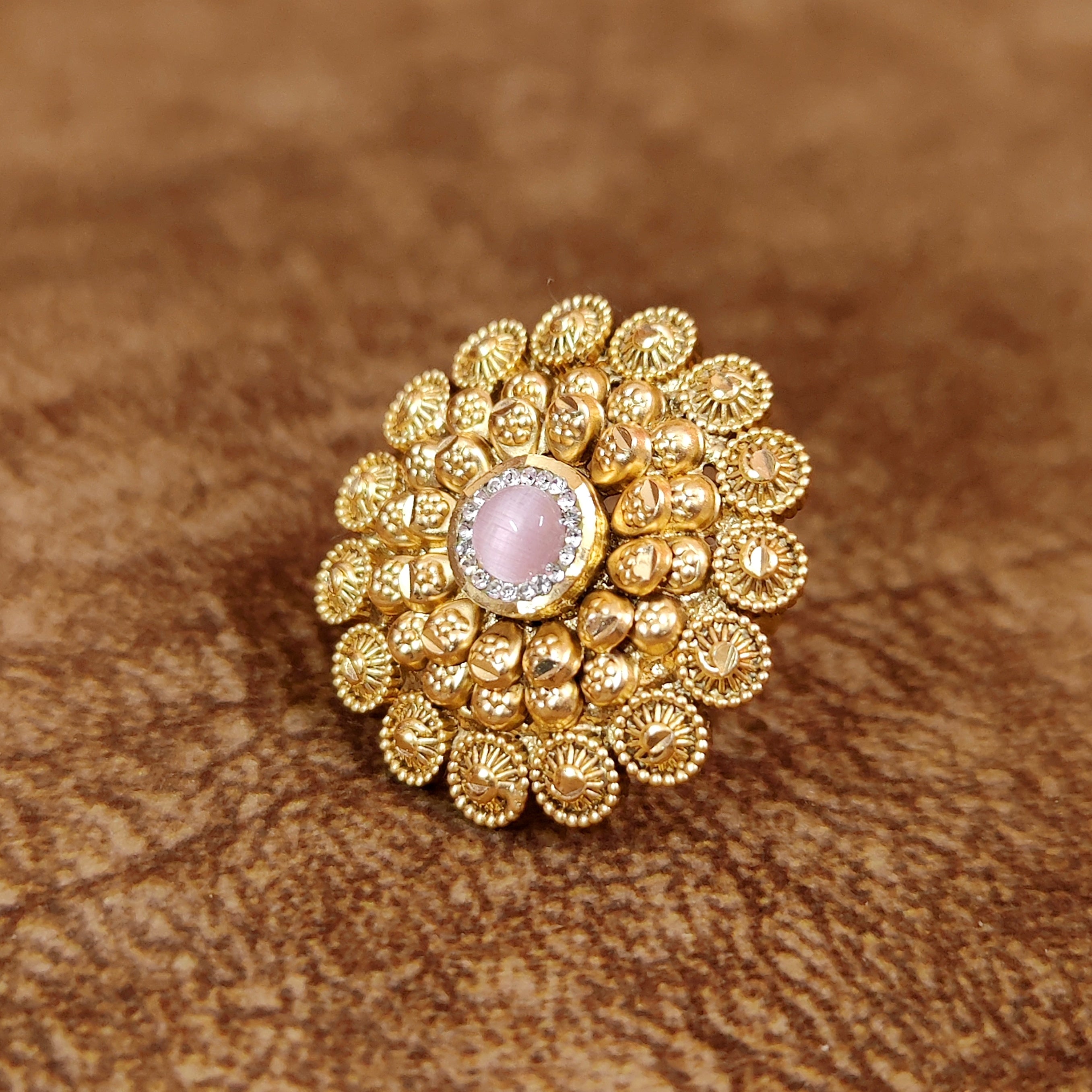 PINK ANTIQUE GOLD PATTERN ADJUSTABLE COCKTAIL RING