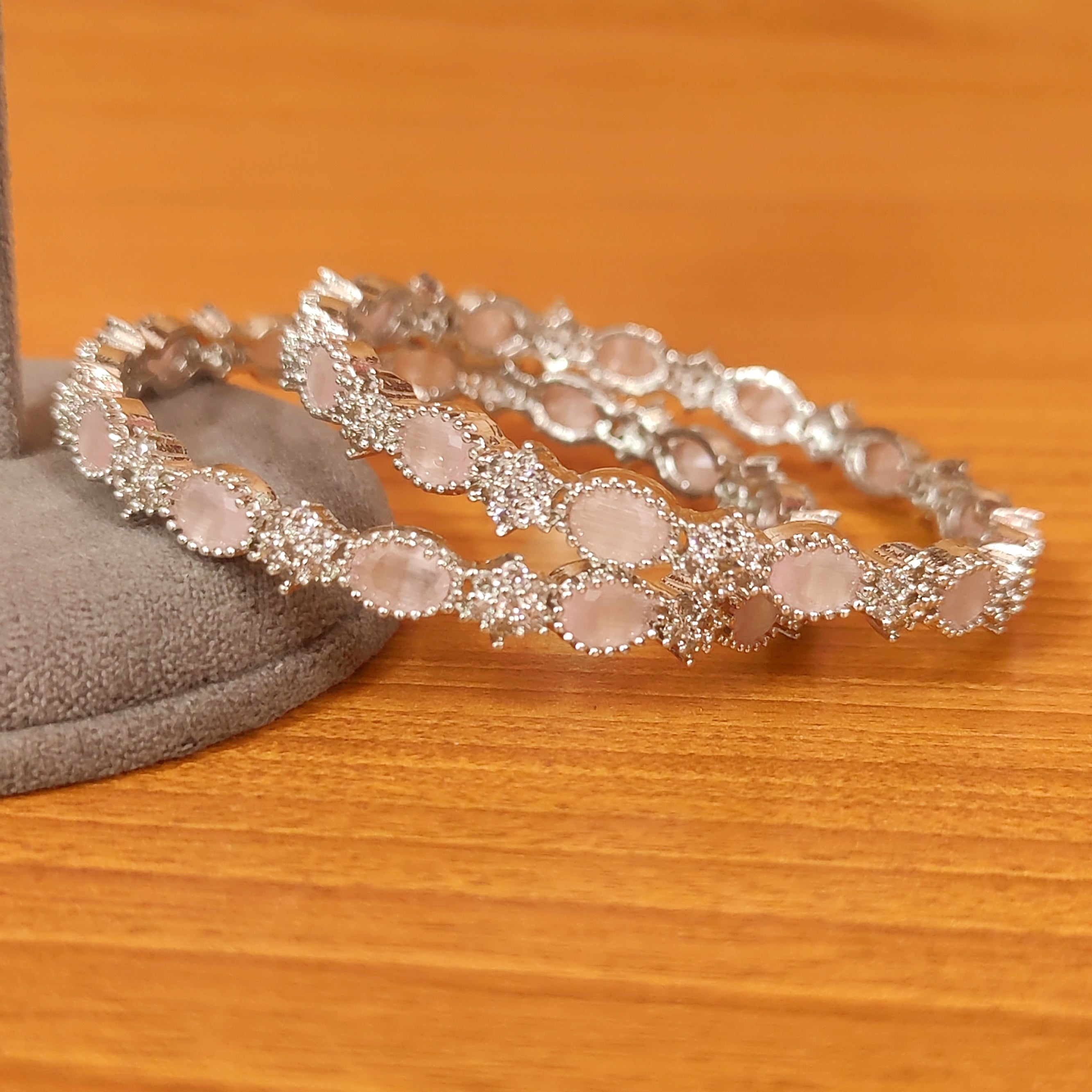 PINK CZ OVAL & AMERICAN DIAMOND SILVER PLATED BANGLES