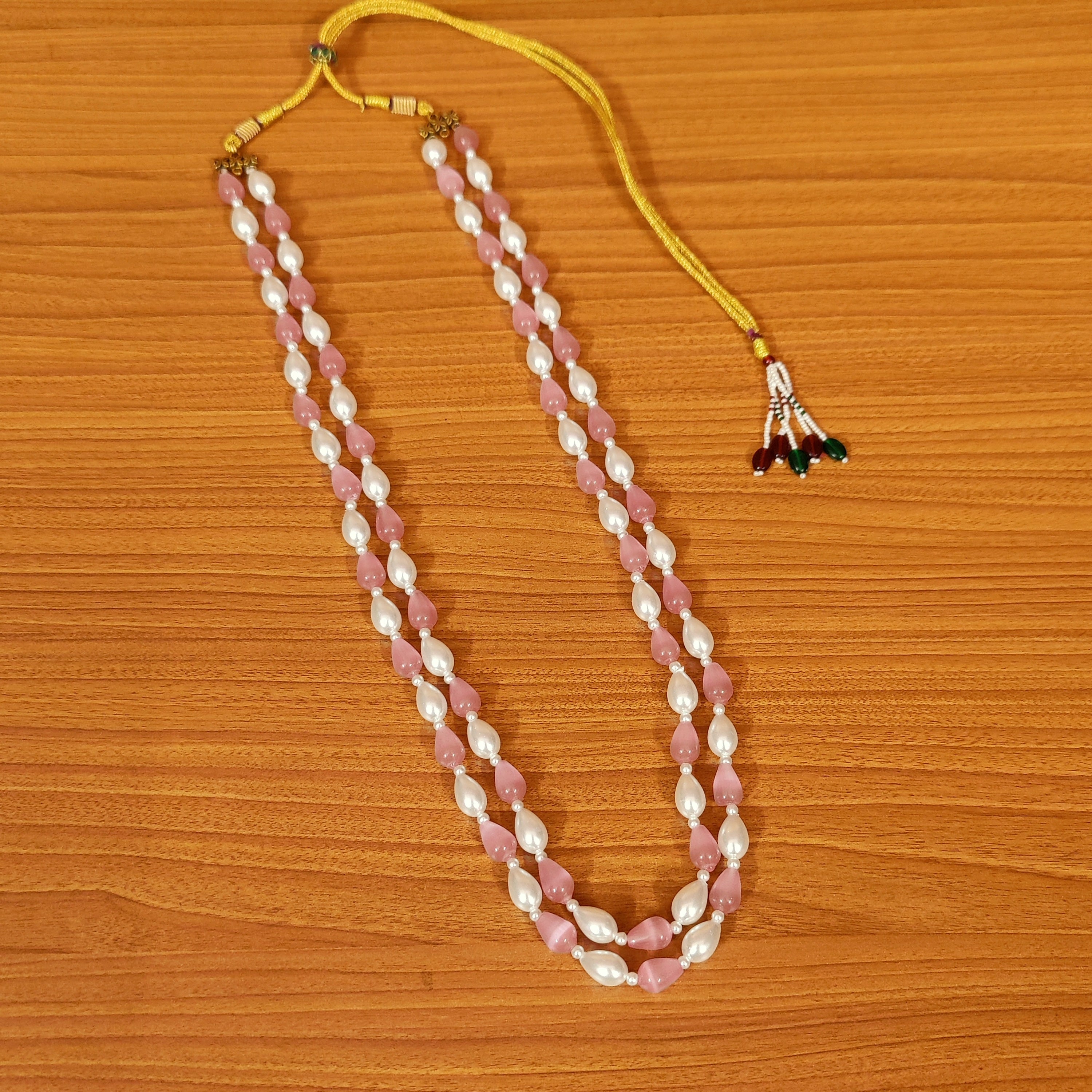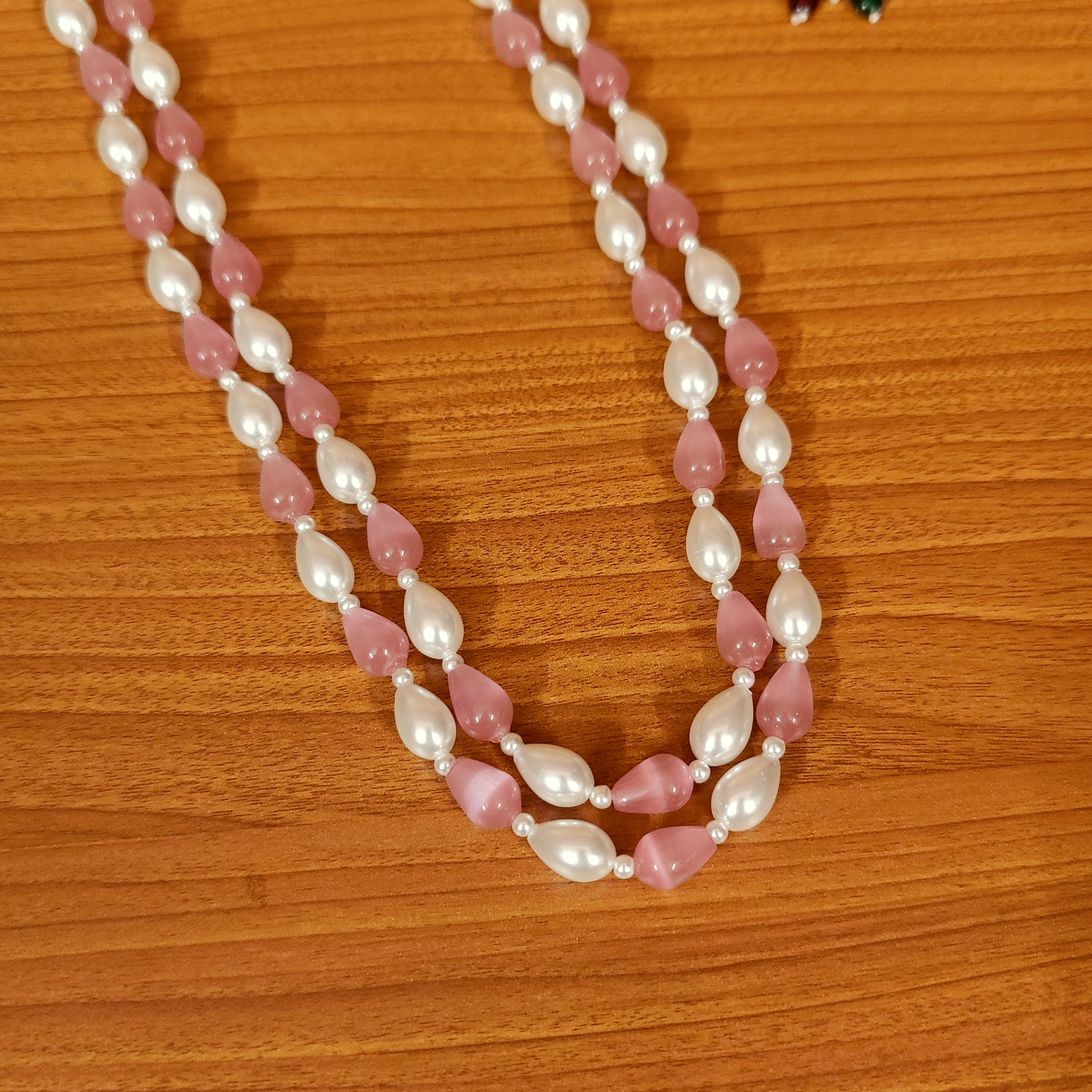 PINK MONALISA BEADS & SHELL PEARL 2 LAYERED NECKLACE