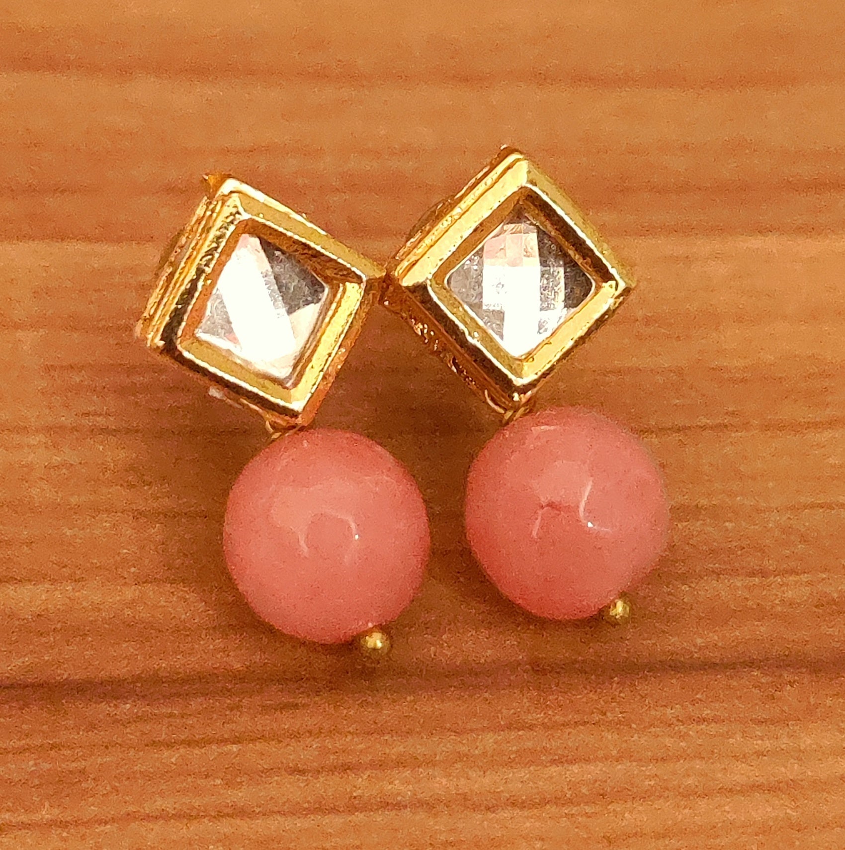 PINK ONYX SQUARE SHAPED KUNDAN MEENAKARI STUDS