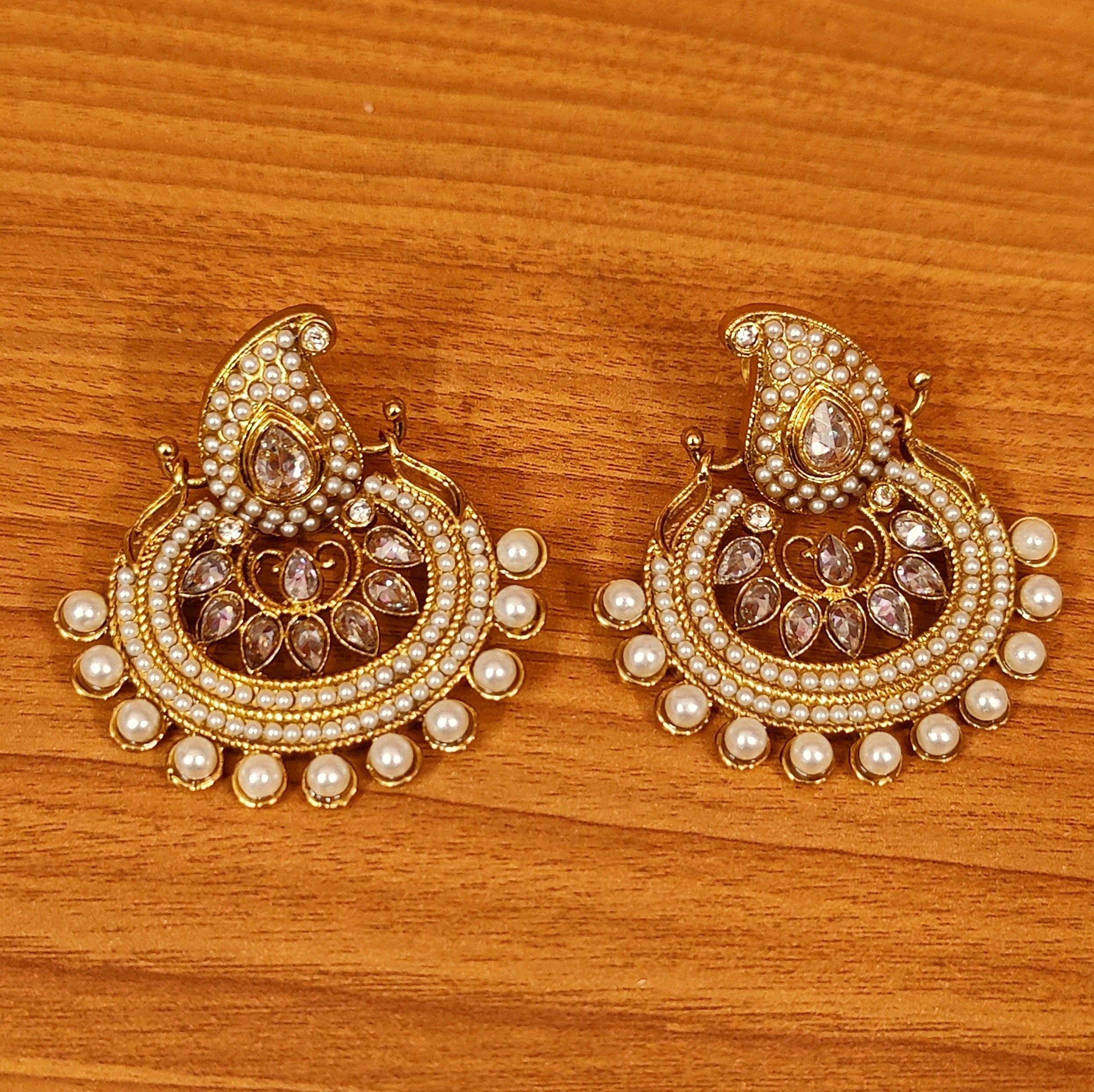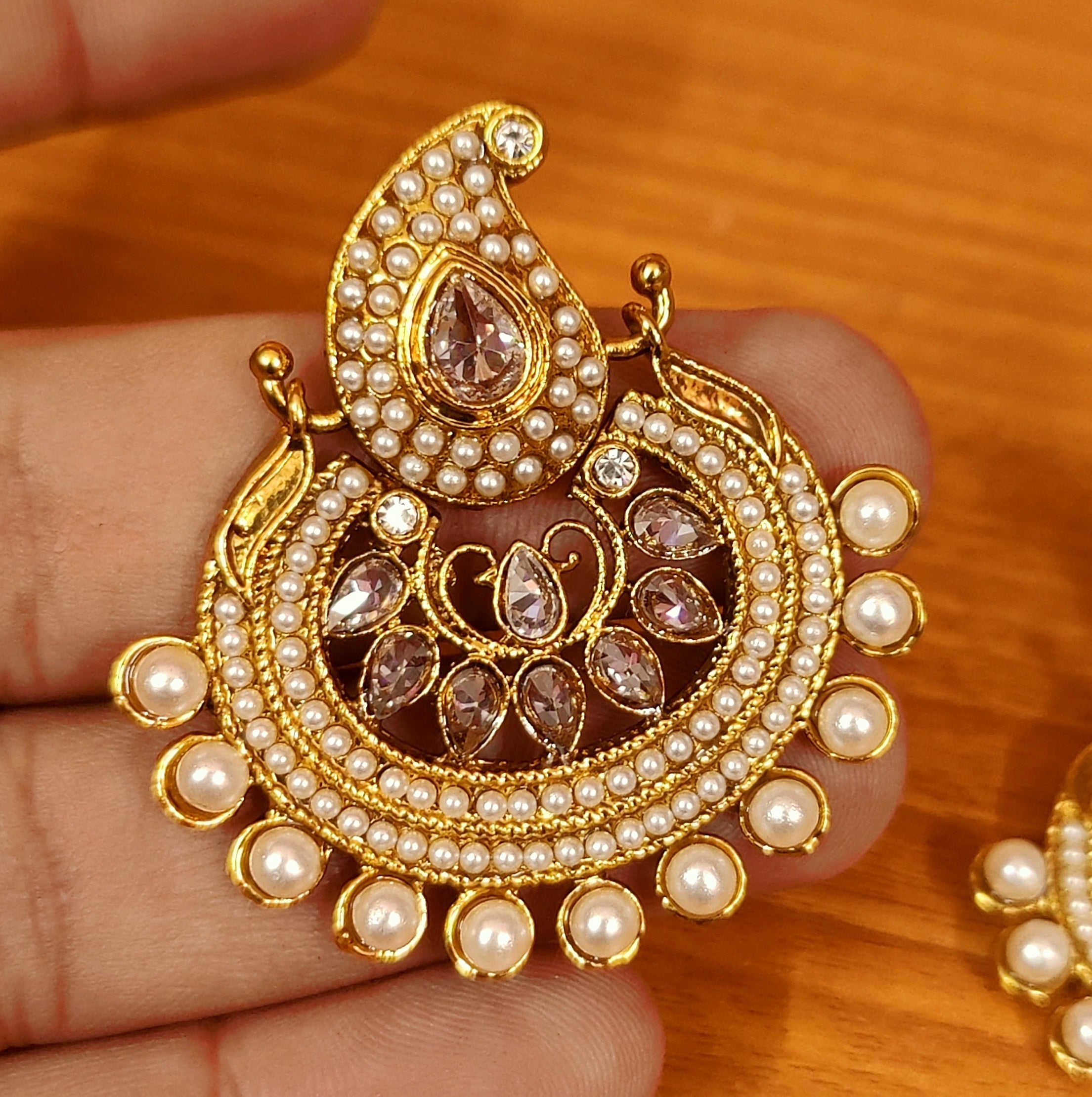 POLKI & PEARL ANTIQUE GOLD CHANDBALI EARRINGS