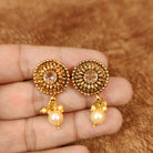 Add a touch of regal charm with these Polki Studded Gold Plated Pearl Studs. Featuring a classic gold-plated finish, sparkling Polki stones, and lustrous pearls, these studs are perfect for elevating your traditional and festive looks. Lightweight yet elegant, they make a timeless addition to your jewelry collection.