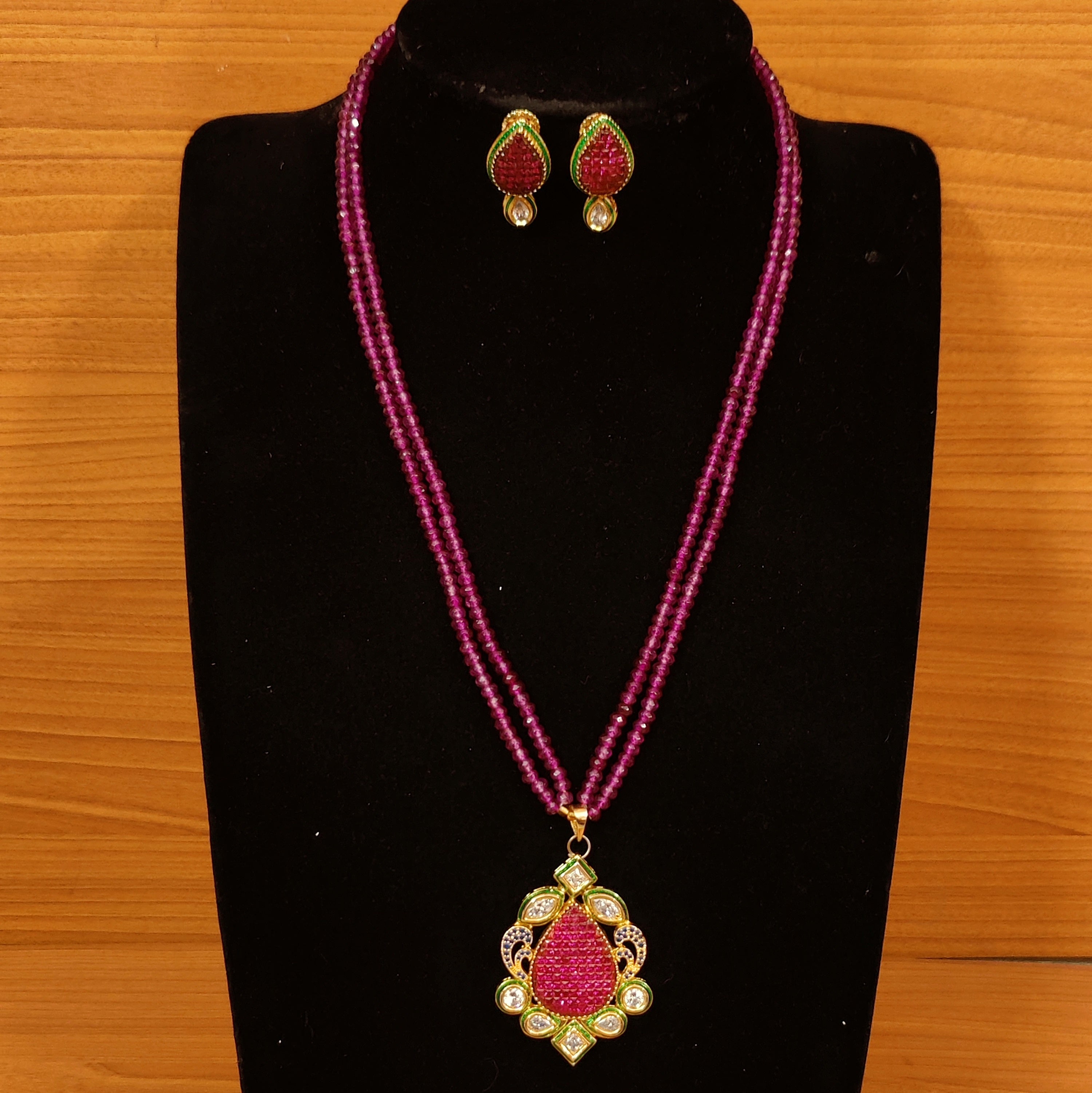 PURPLE ONYX KUNDAN LOOK PENDANT SET
