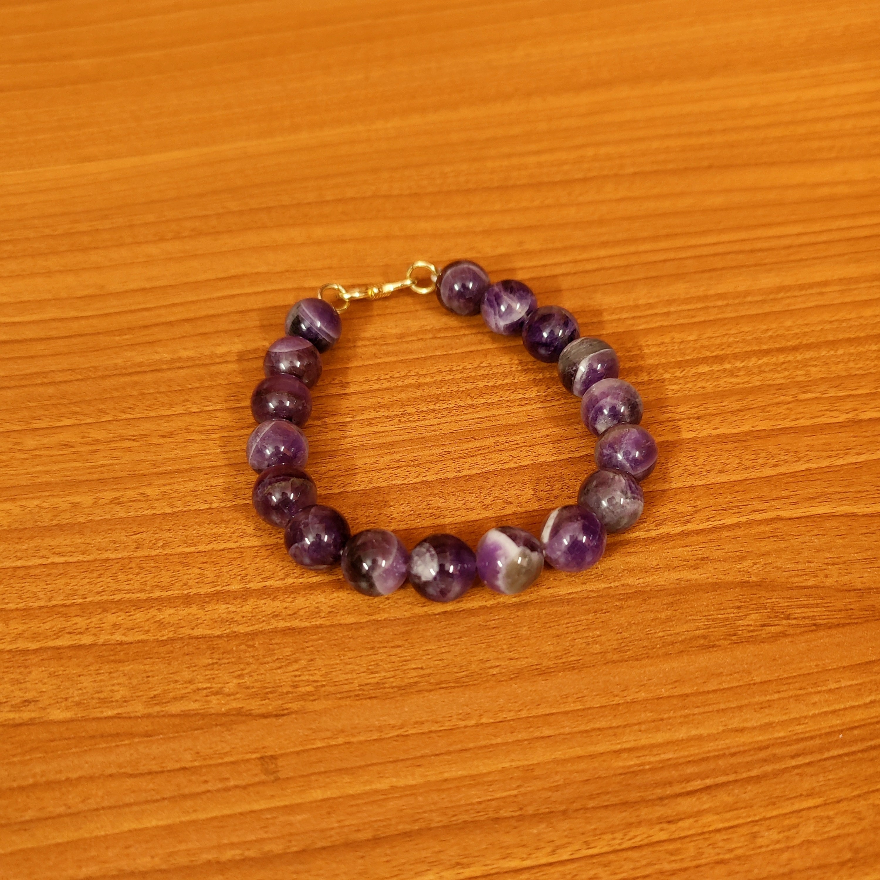 This beautiful bracelet is handcrafted with real amethyst beads of 10mm size attached to the gold plated hook. The bracelet hook is coated with 18 kt gold plating that gives a real gold look to the design.