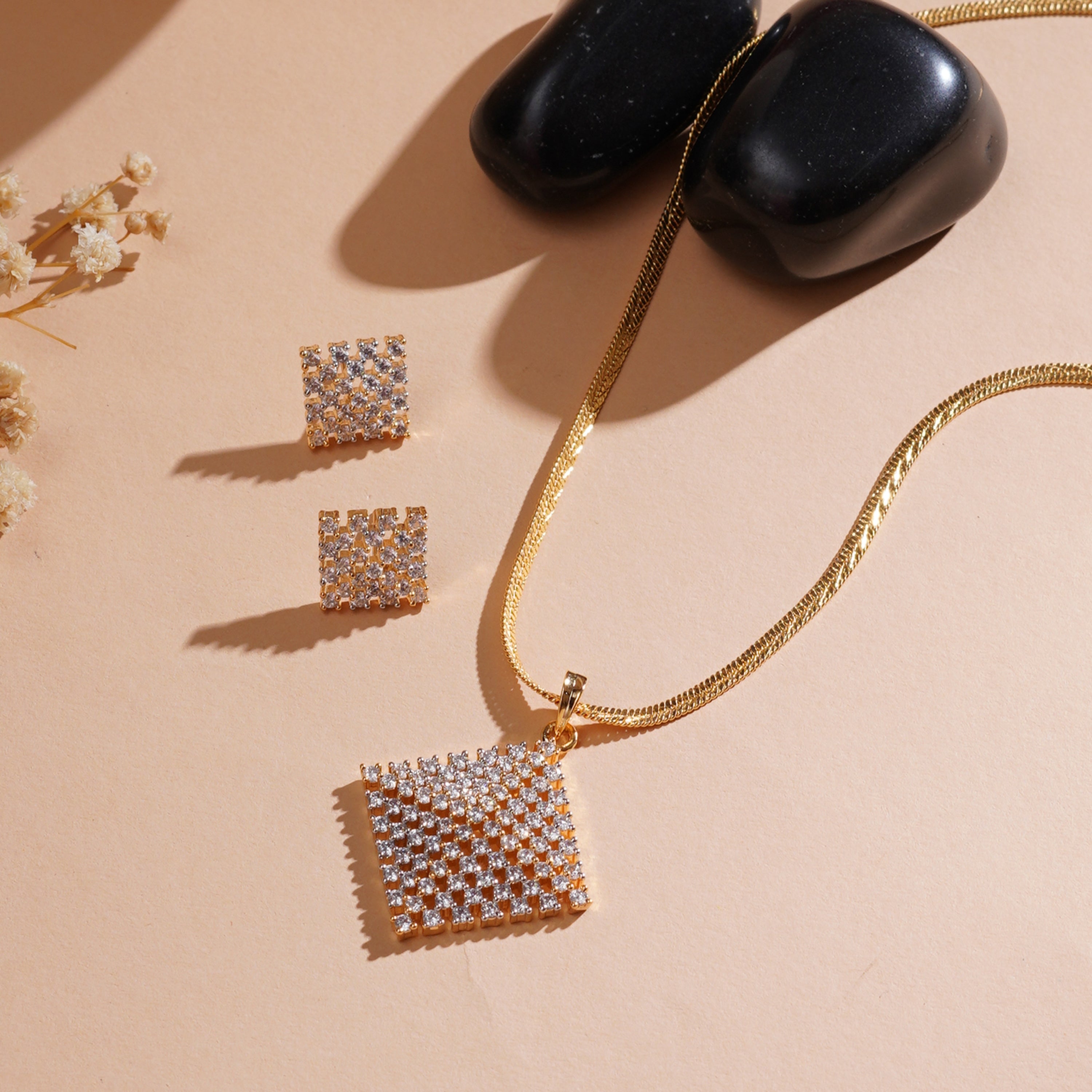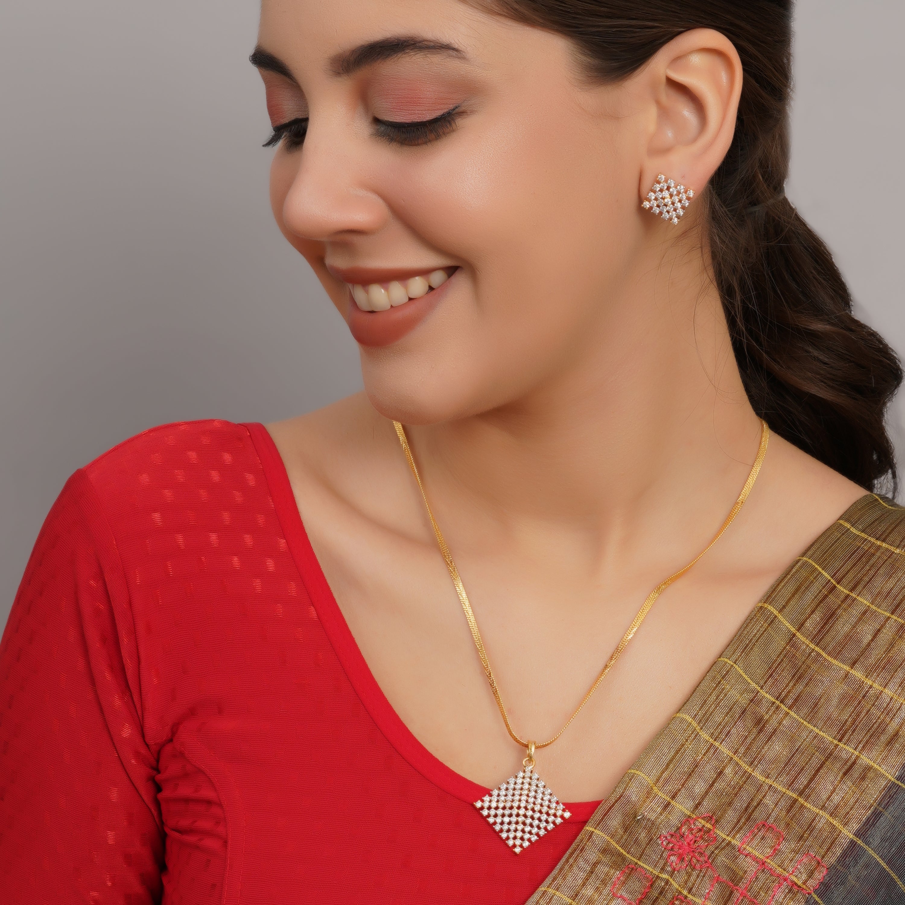 REAL DIAMOND LOOK CZ STUDDED GOLD PLATED PENDANT SET WITH CHAIN