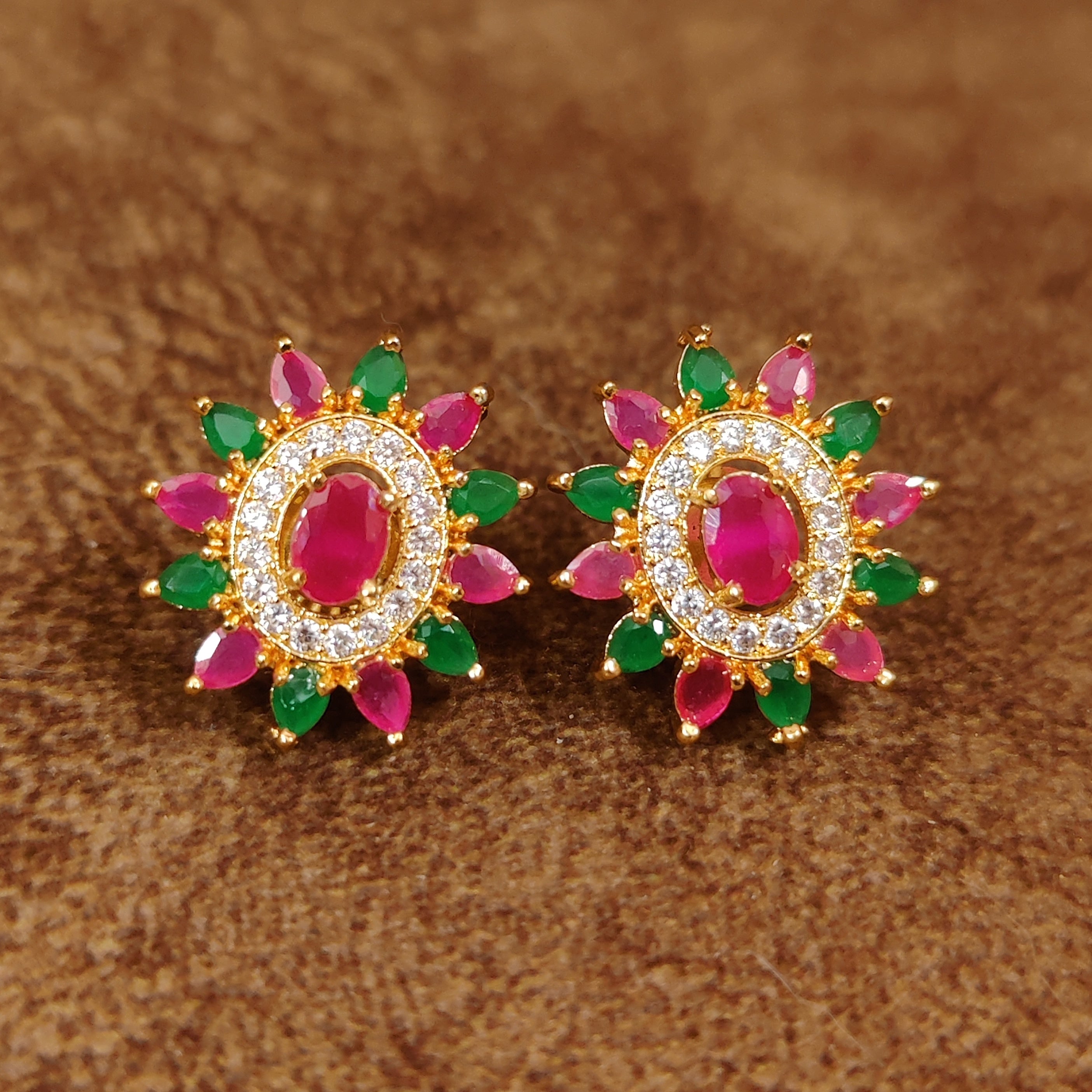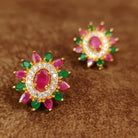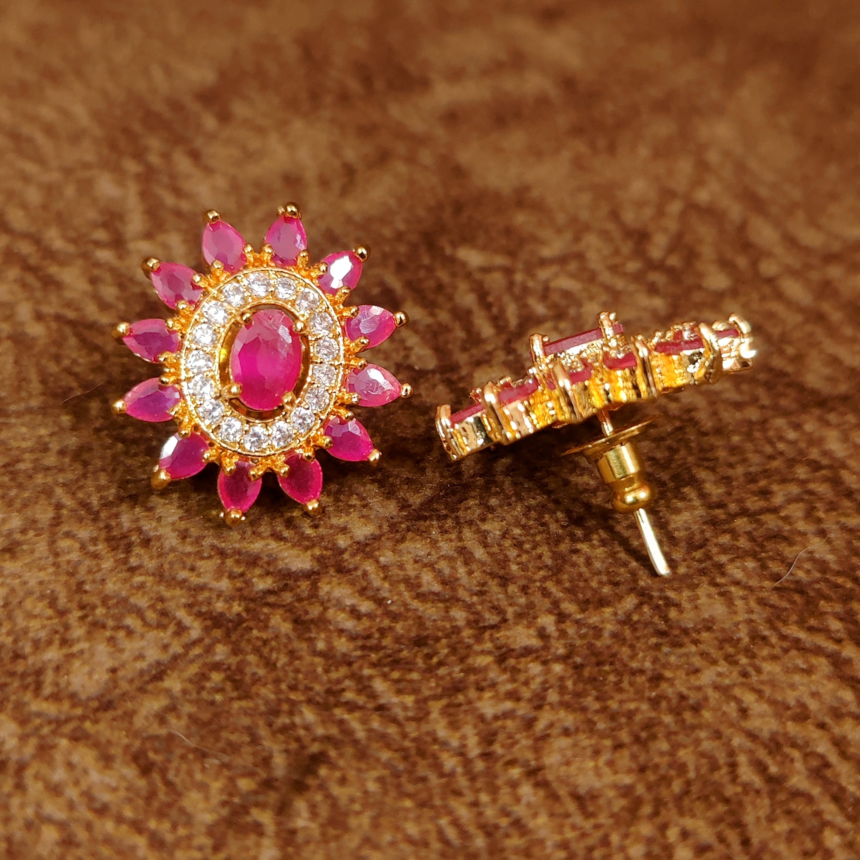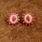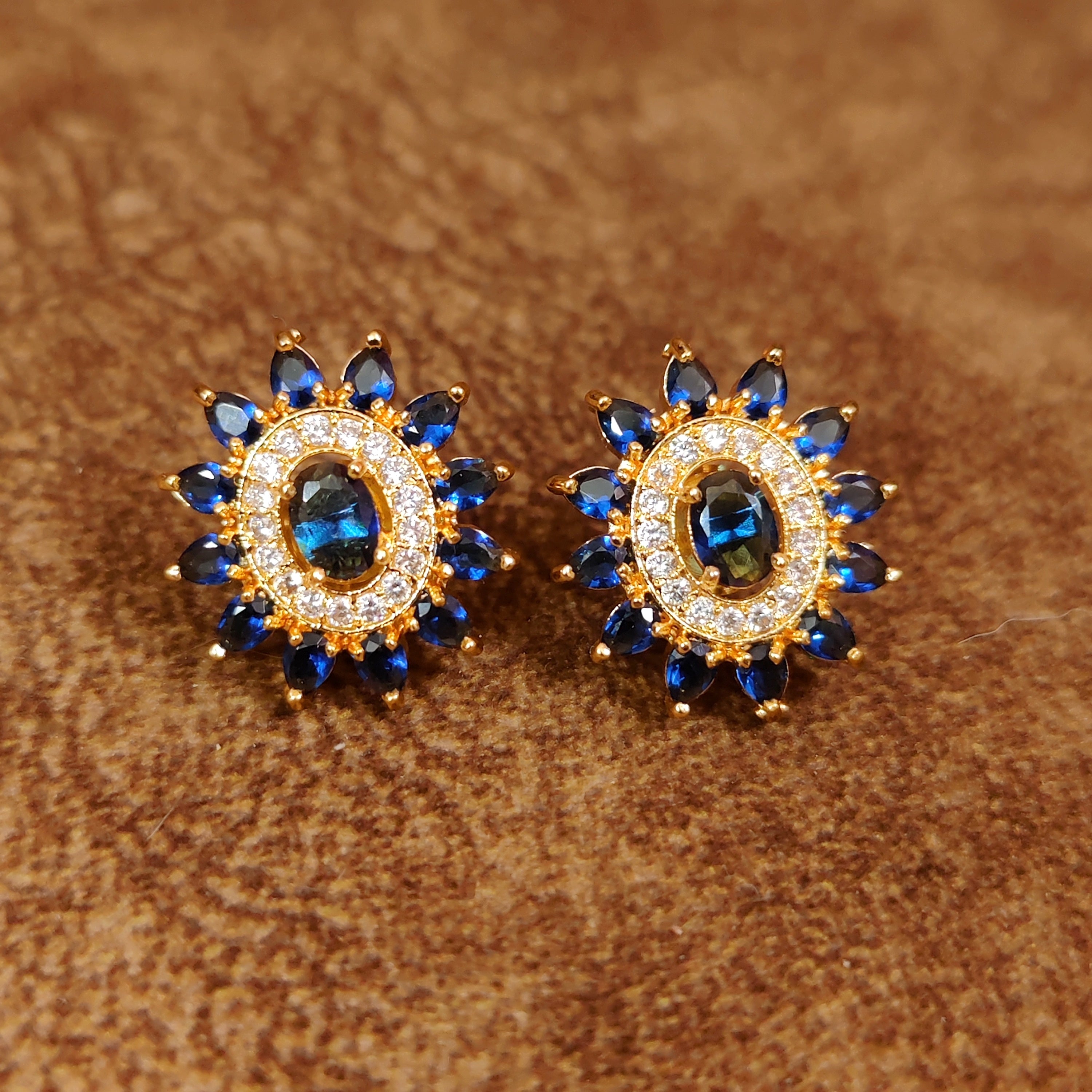 Elevate your style with these exquisite earrings, perfect for adding a touch of elegance to any outfit. Featuring a stunning central Blue Sapphire stone, these earrings are beautifully designed with intricate gold detailing that radiates a timeless charm. Surrounding the central stone are sparkling, round-cut cubic zirconia that catch the light from every angle, enhancing the brilliance and glamour of these earrings.