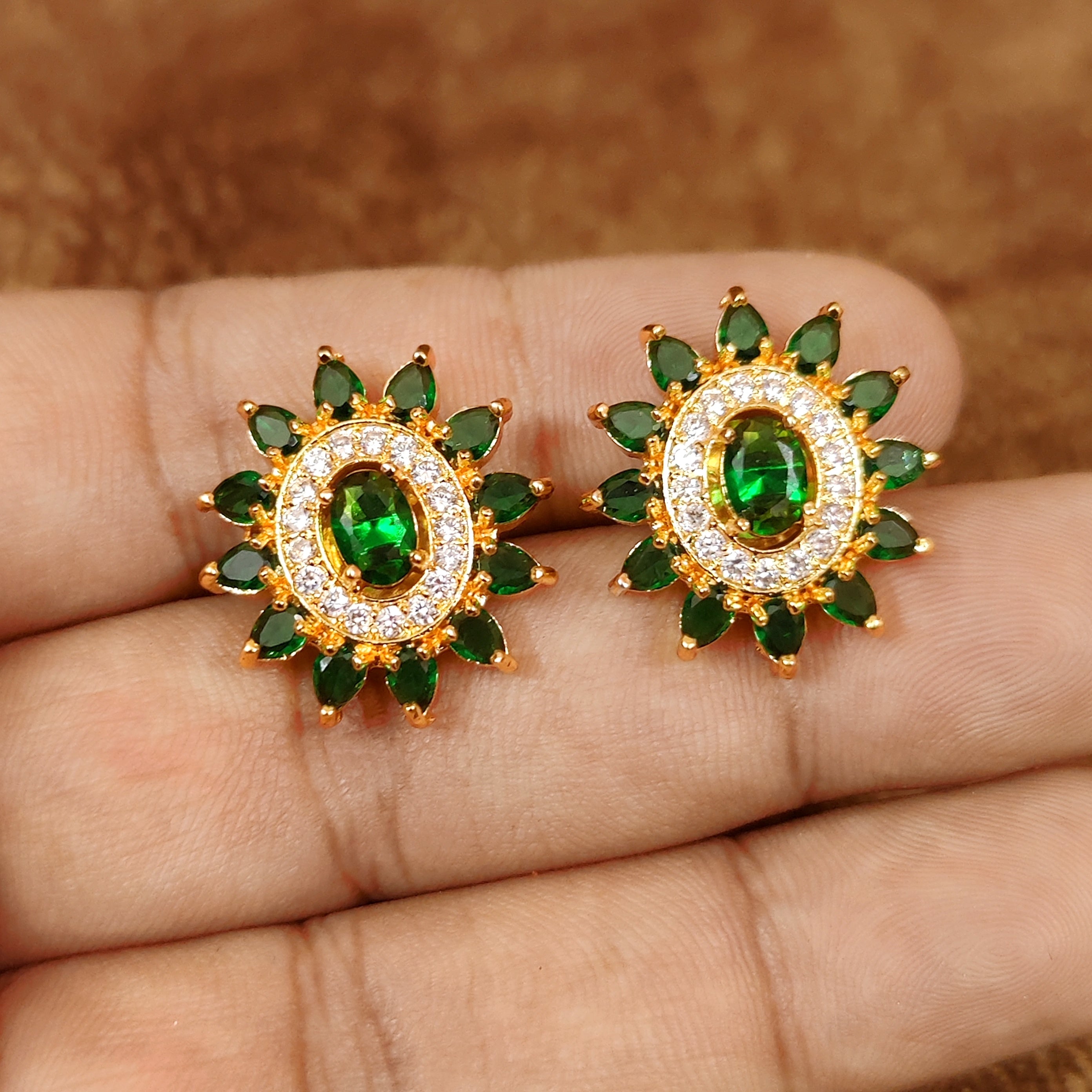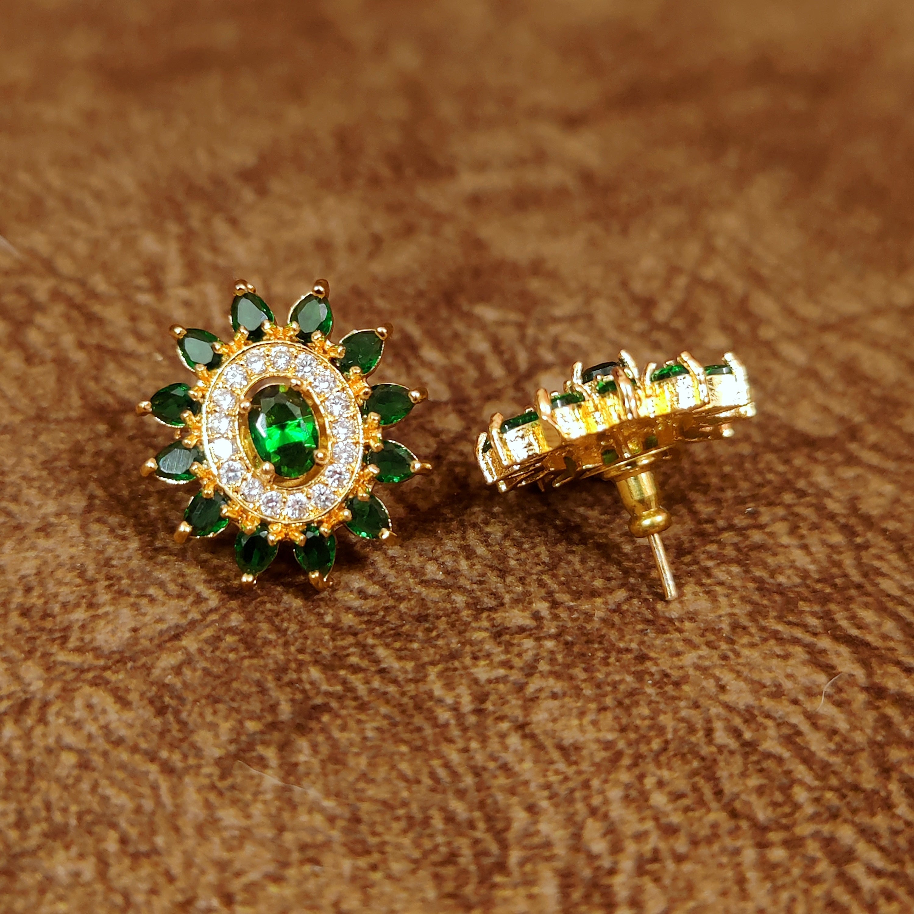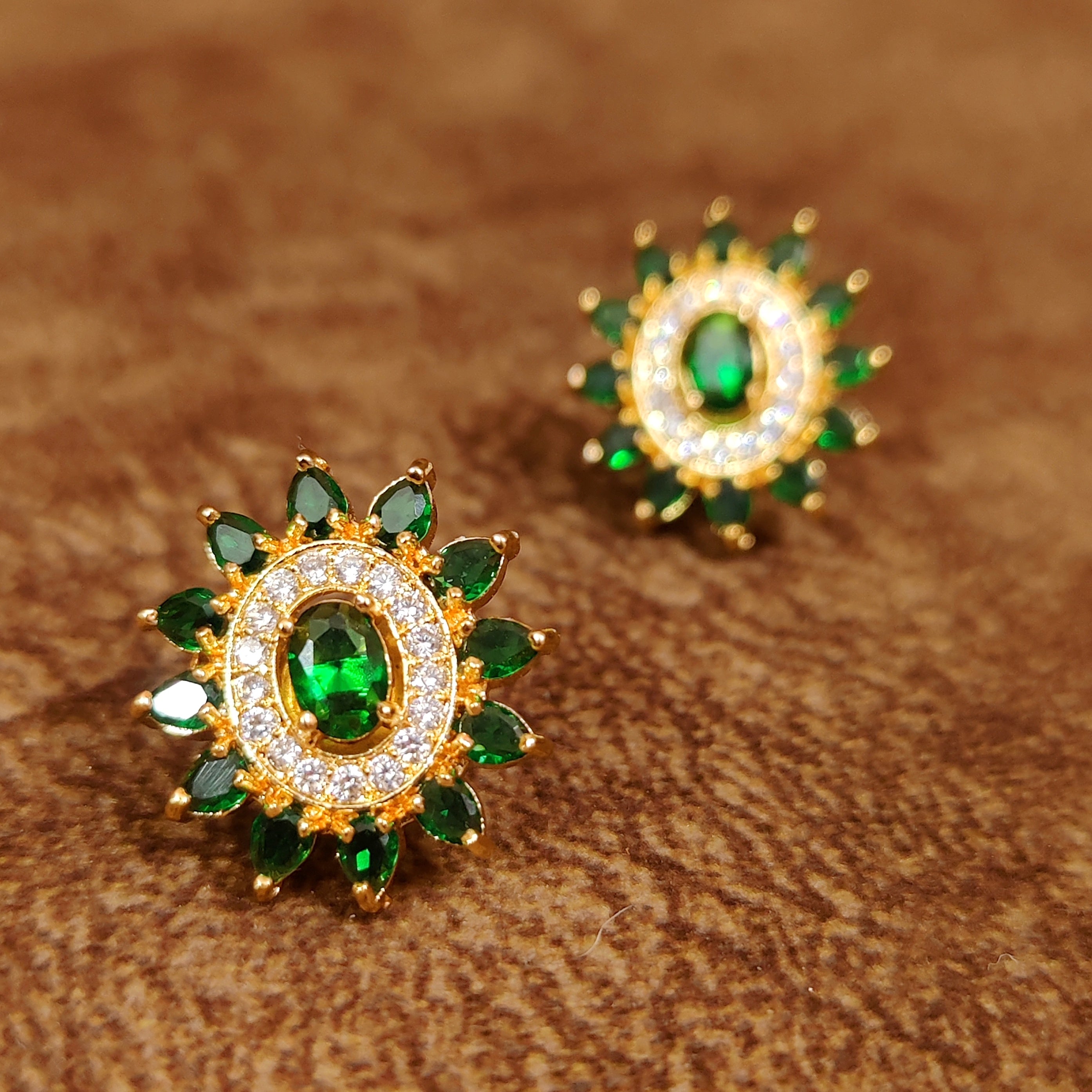 REAL DIAMOND LOOKALIKE EMERALD COLOUR STUDDED STUDS