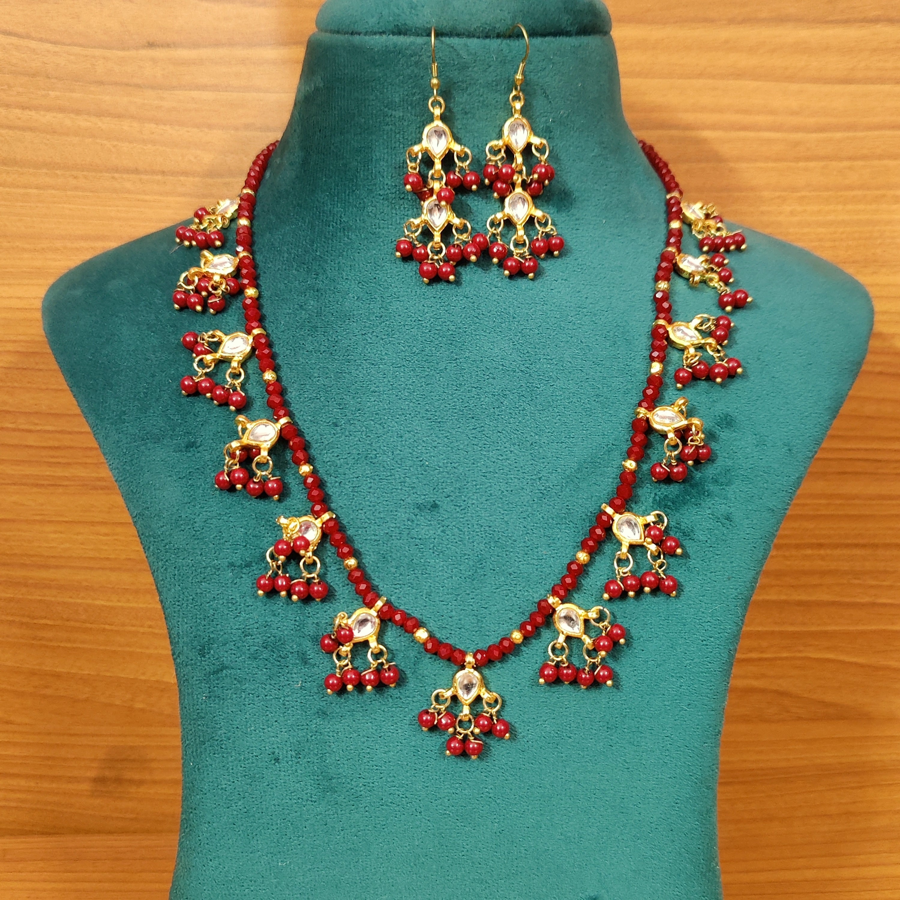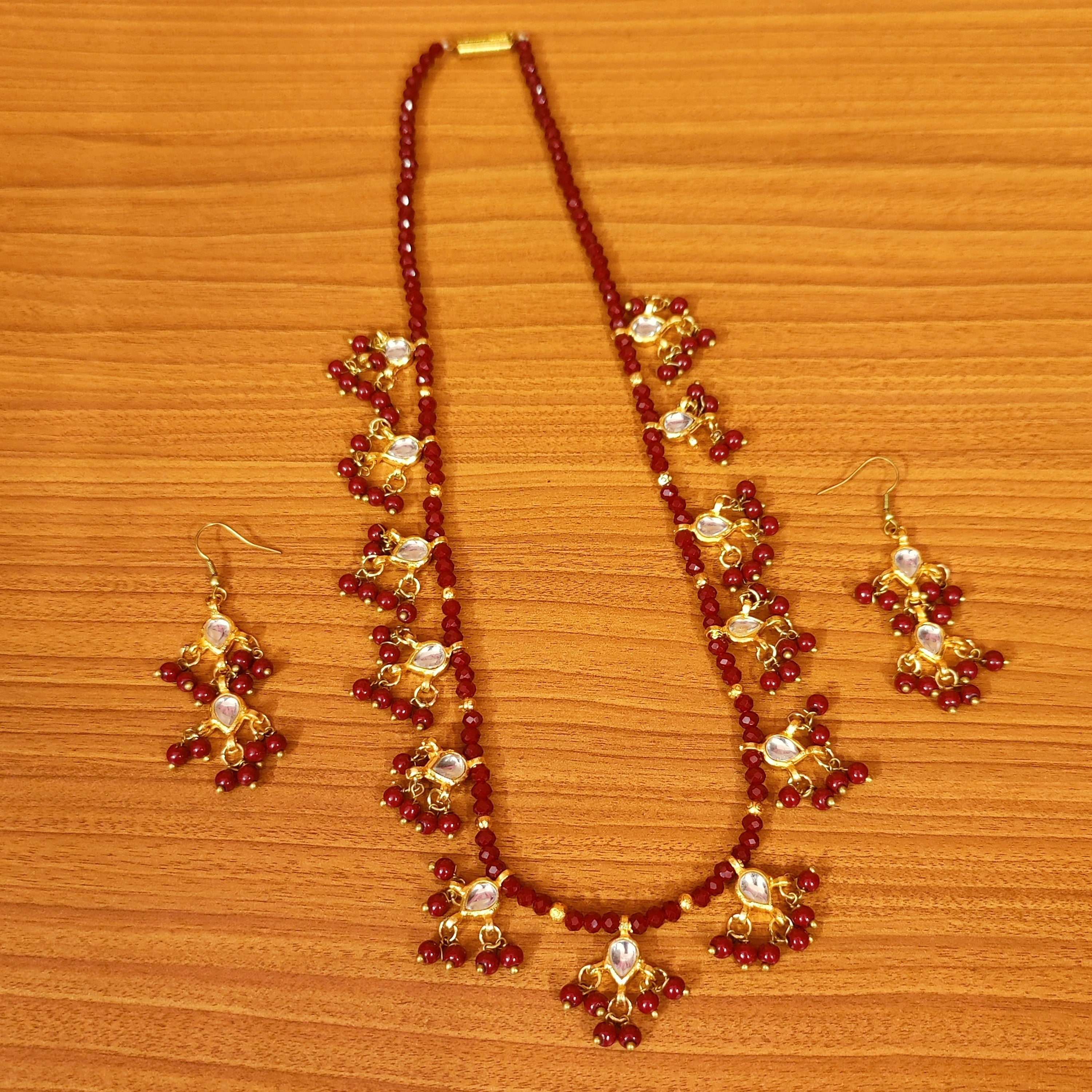 Red Colour Kundan Polki Ethnic Necklace