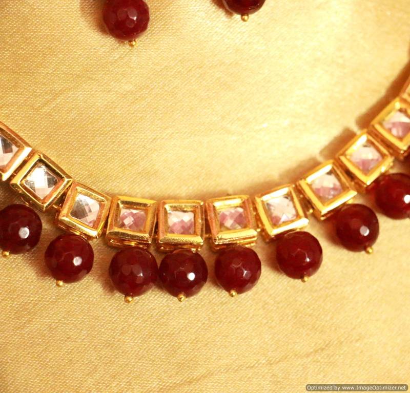 Red Onyx Kundan Single Line Necklace Set
