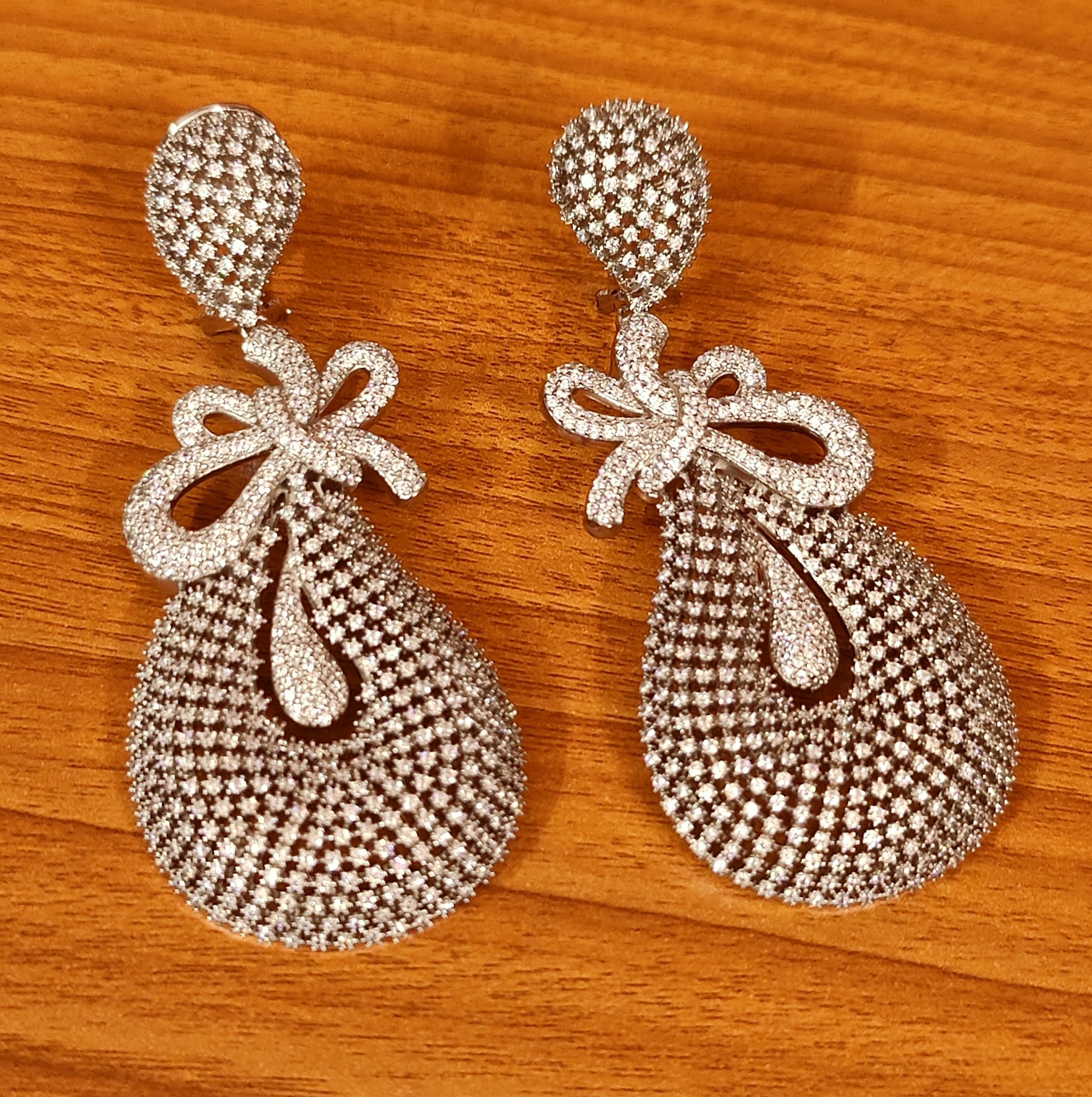 These diamond look earrings are handcrafted in silver alloy with imitation cz signity stones which are of the finest quality of american diamond . These party wear earrings are handcrafted with cz signity stones to perfection with fine setting and plated with real 18kt fine nickel white gold rhodium that gives a real diamond look to the design.