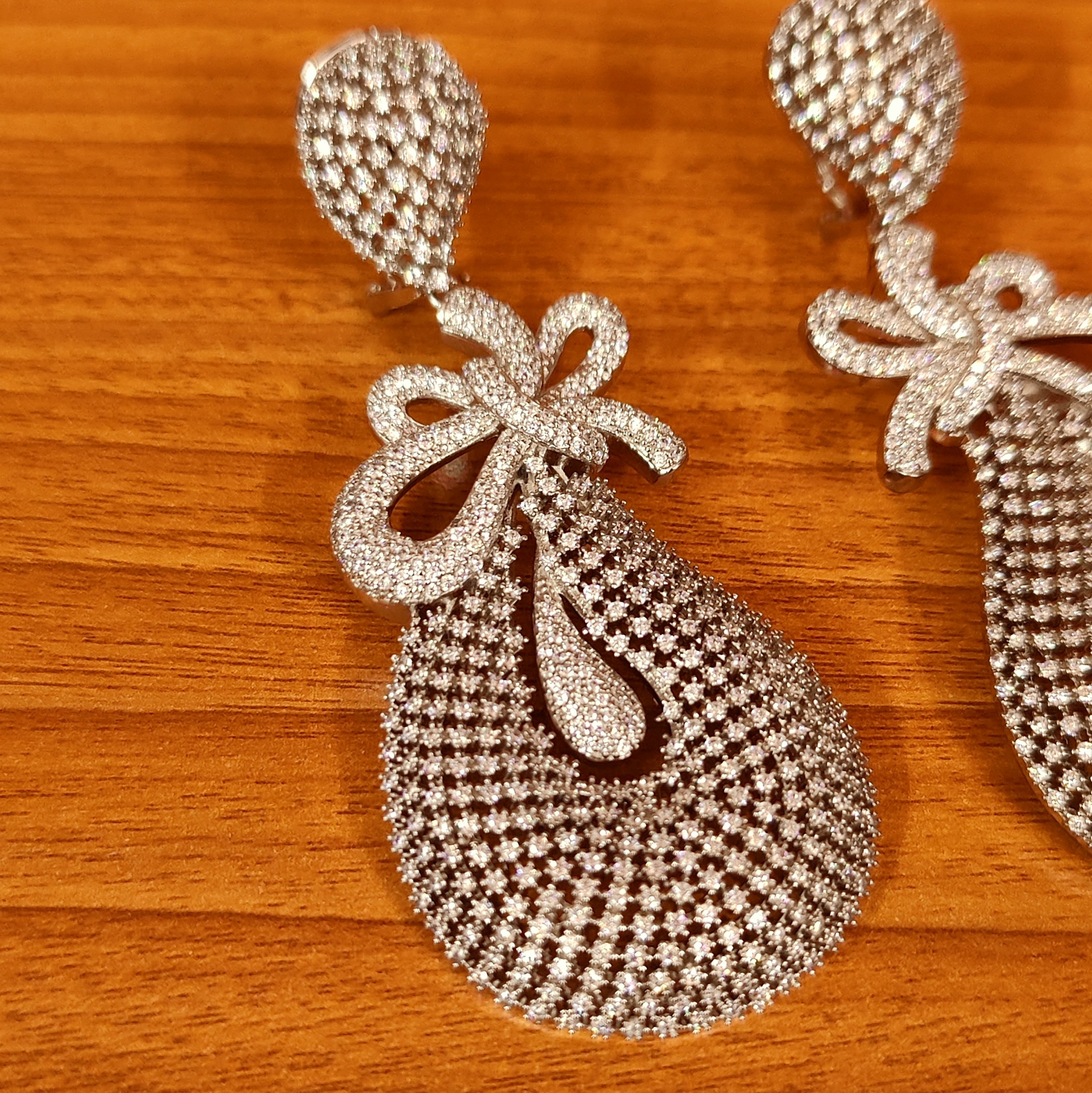 RIBBON LOOK SILVER PLATED DIAMOND LOOK DANGLERS