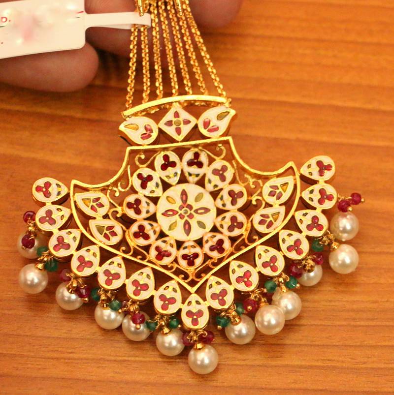 - Maang Tikka : Length : 11.4 cms, Size : 8 cms