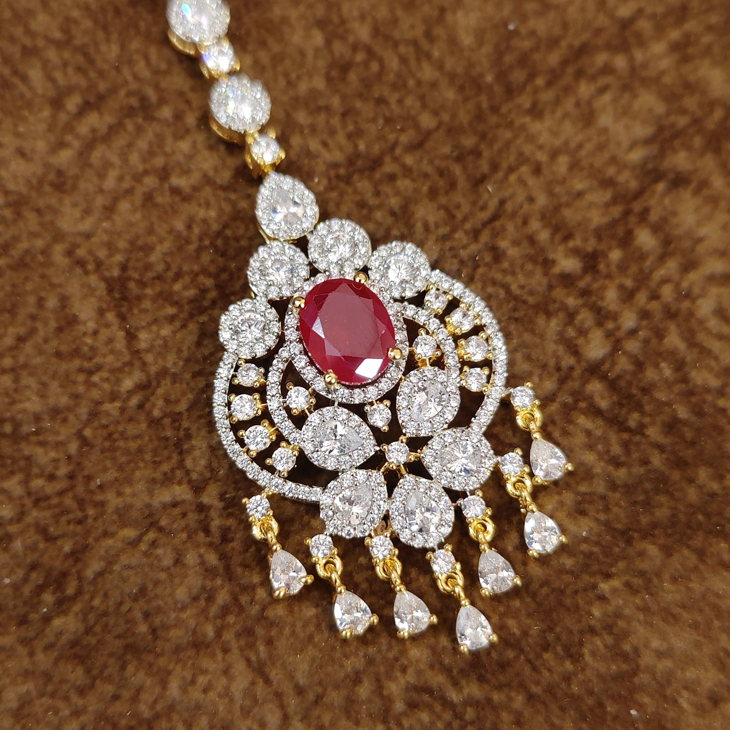 RUBY & CZ DIAMOND LOOK ALIKE WEDDING TIKKA