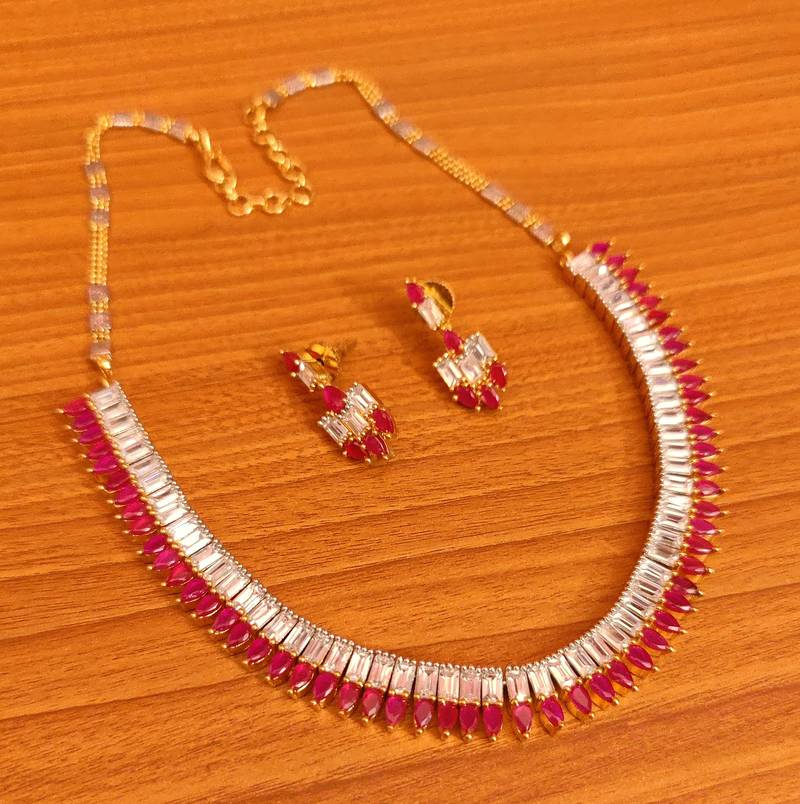 RUBY & CZ DIAMOND LOOK NECKLACE SET
