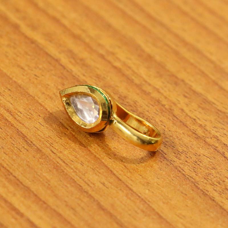 KUNDAN POLKI GOLD PLATED PEAR SHAPED NOSEPIN