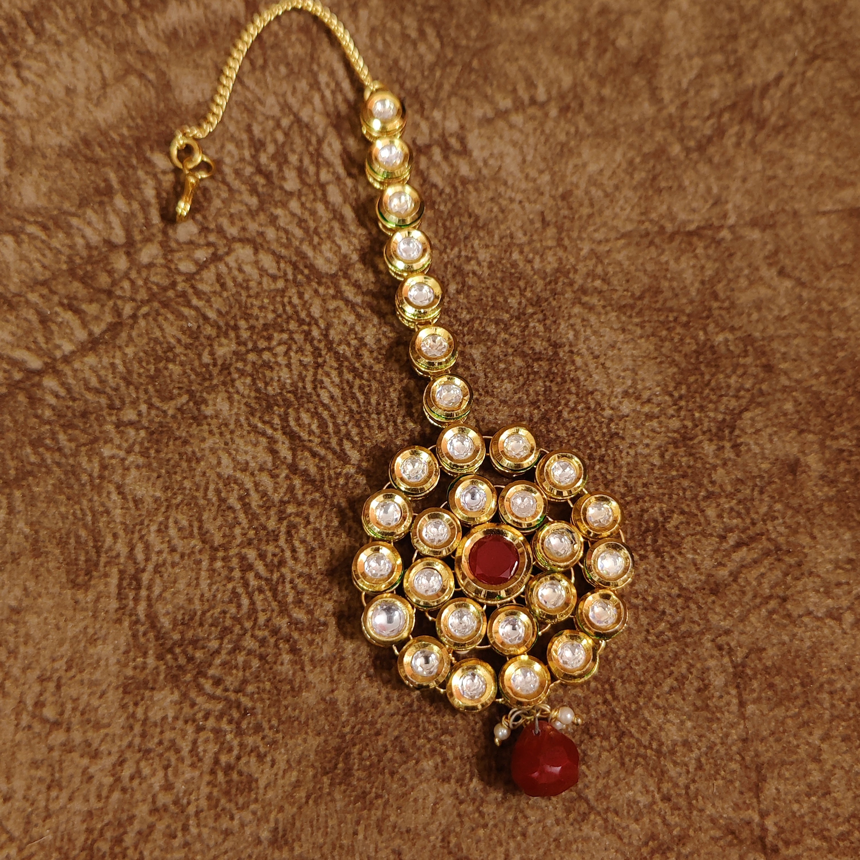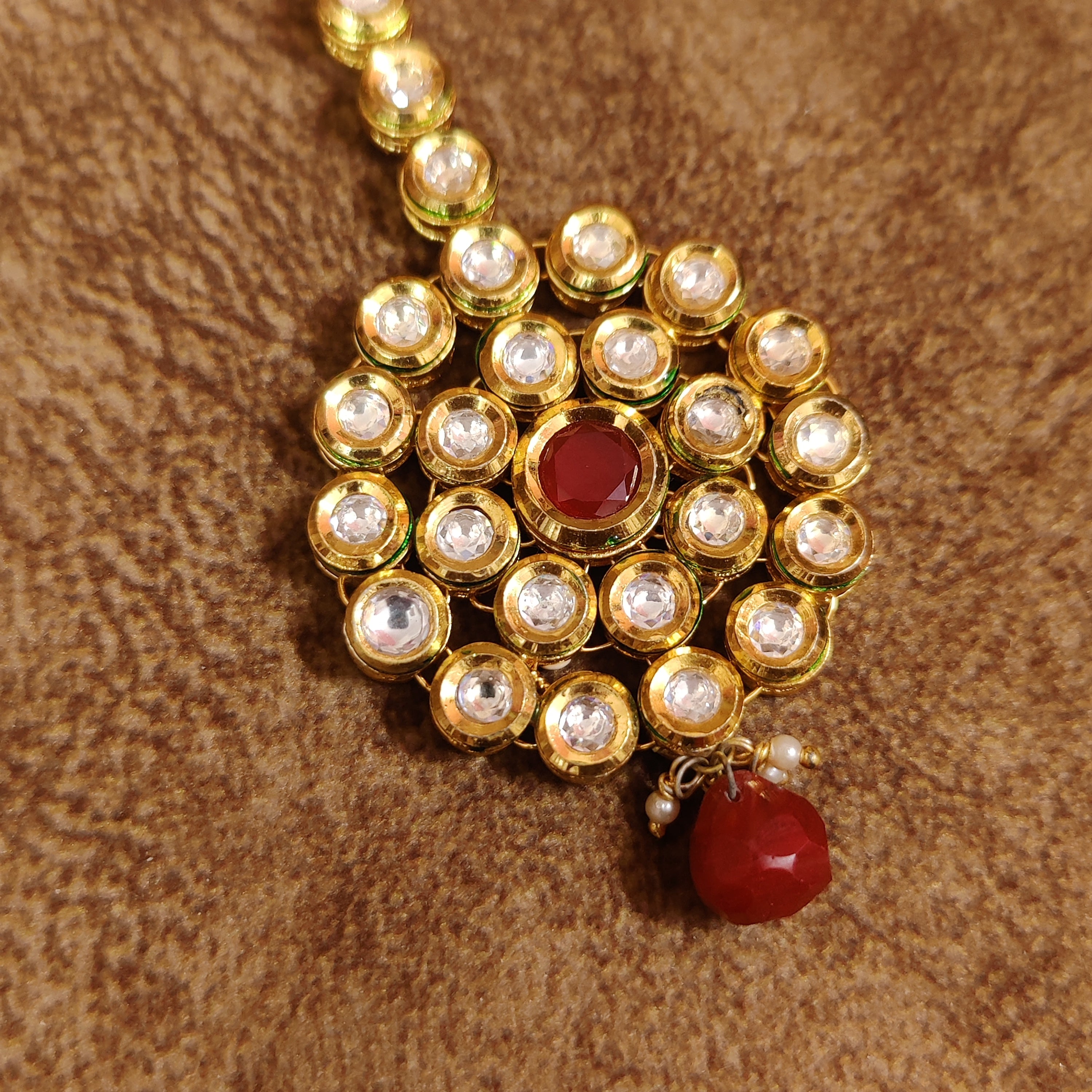 RUBY KUNDAN MEENAKARI WEDDING MAANG TIKKA