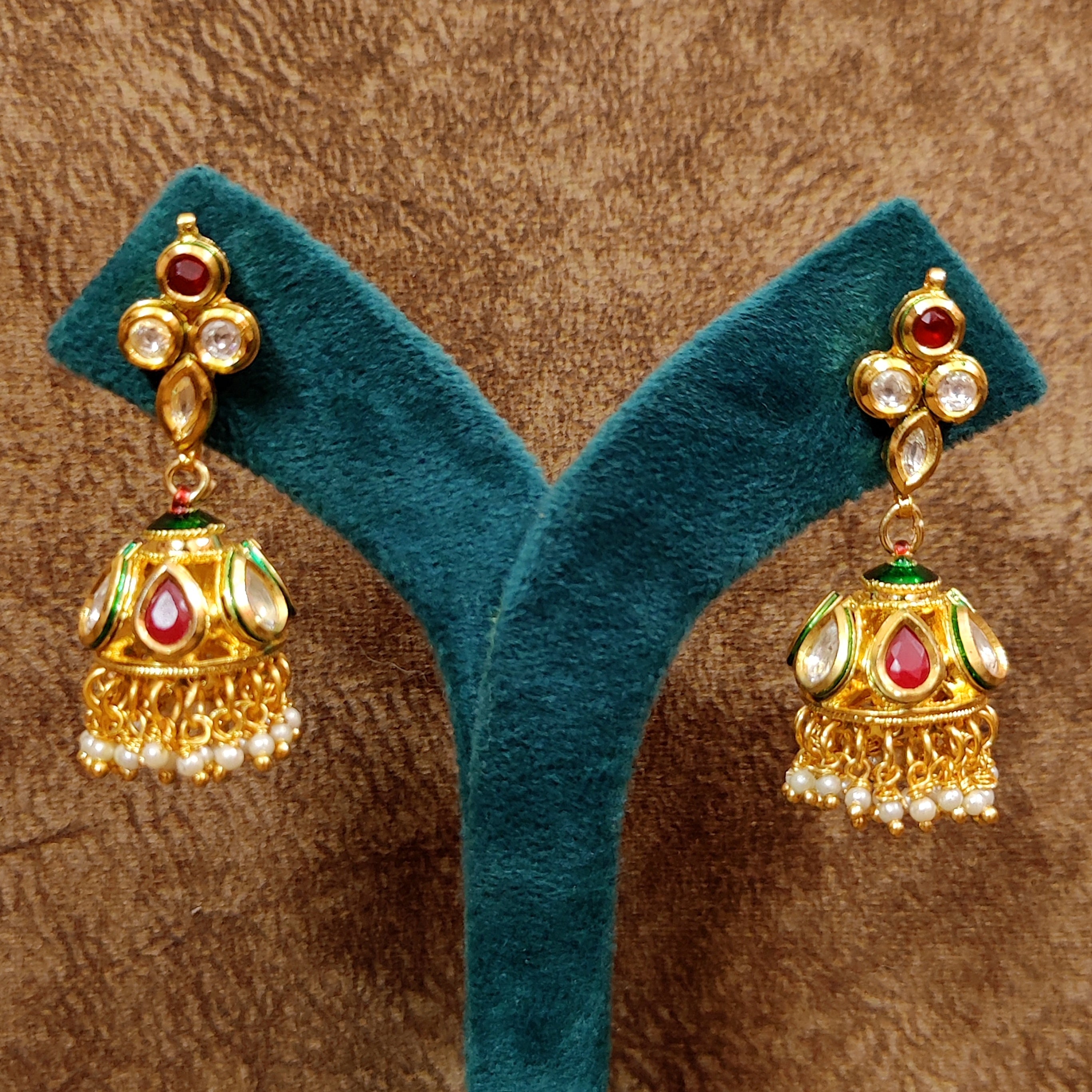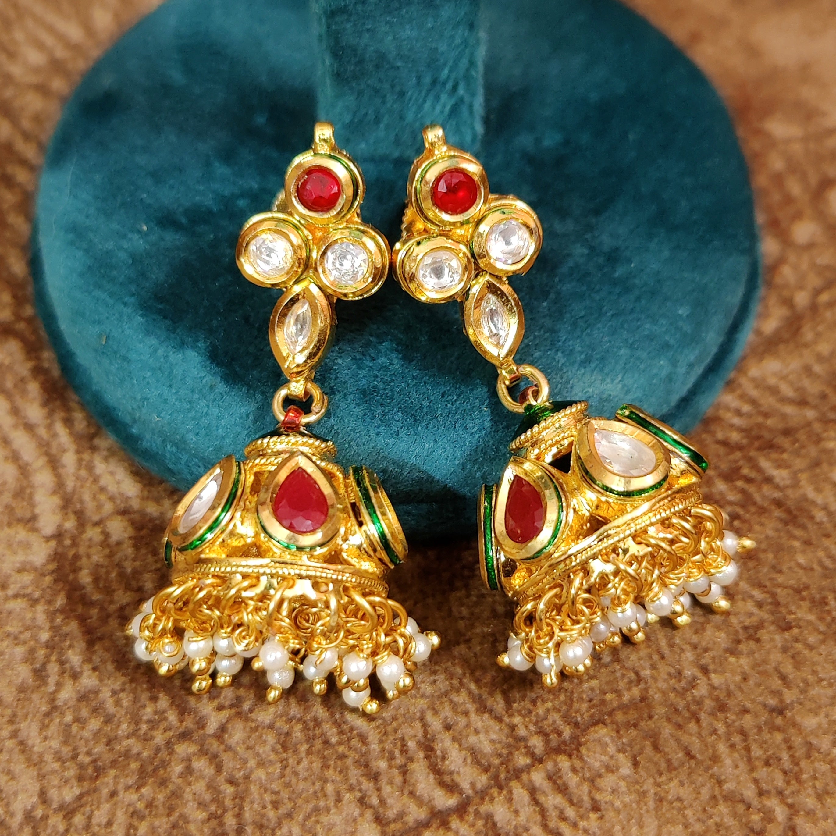 RUBY KUNDAN POLKI GOLD PLATED JHUMKA'S