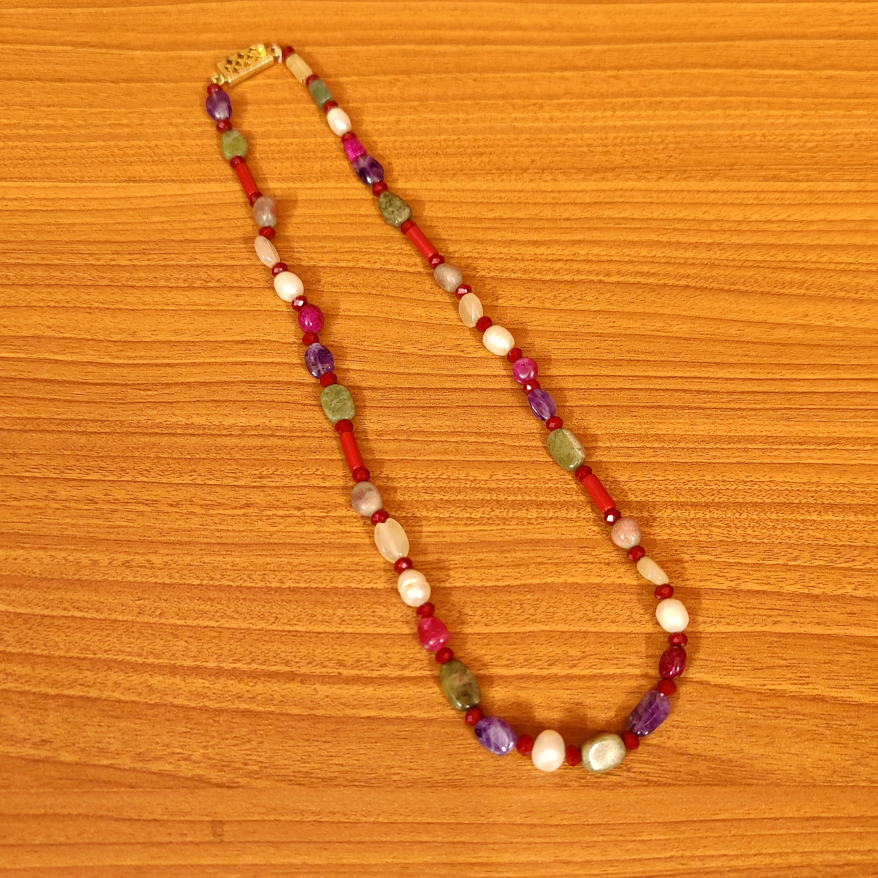 SEMI PRECIOUS GEM STONES SINGLE LINE NECKLACE