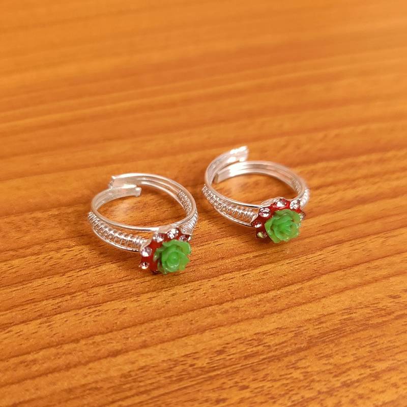 These Toe Rings Are Handcrafted In Copper Alloy With Imitation Colour Stones & Zircons , The Toe Rings Are Very Light In Weight And Are Plated With Silver Polish Which Gives Them A Real Silver Look.