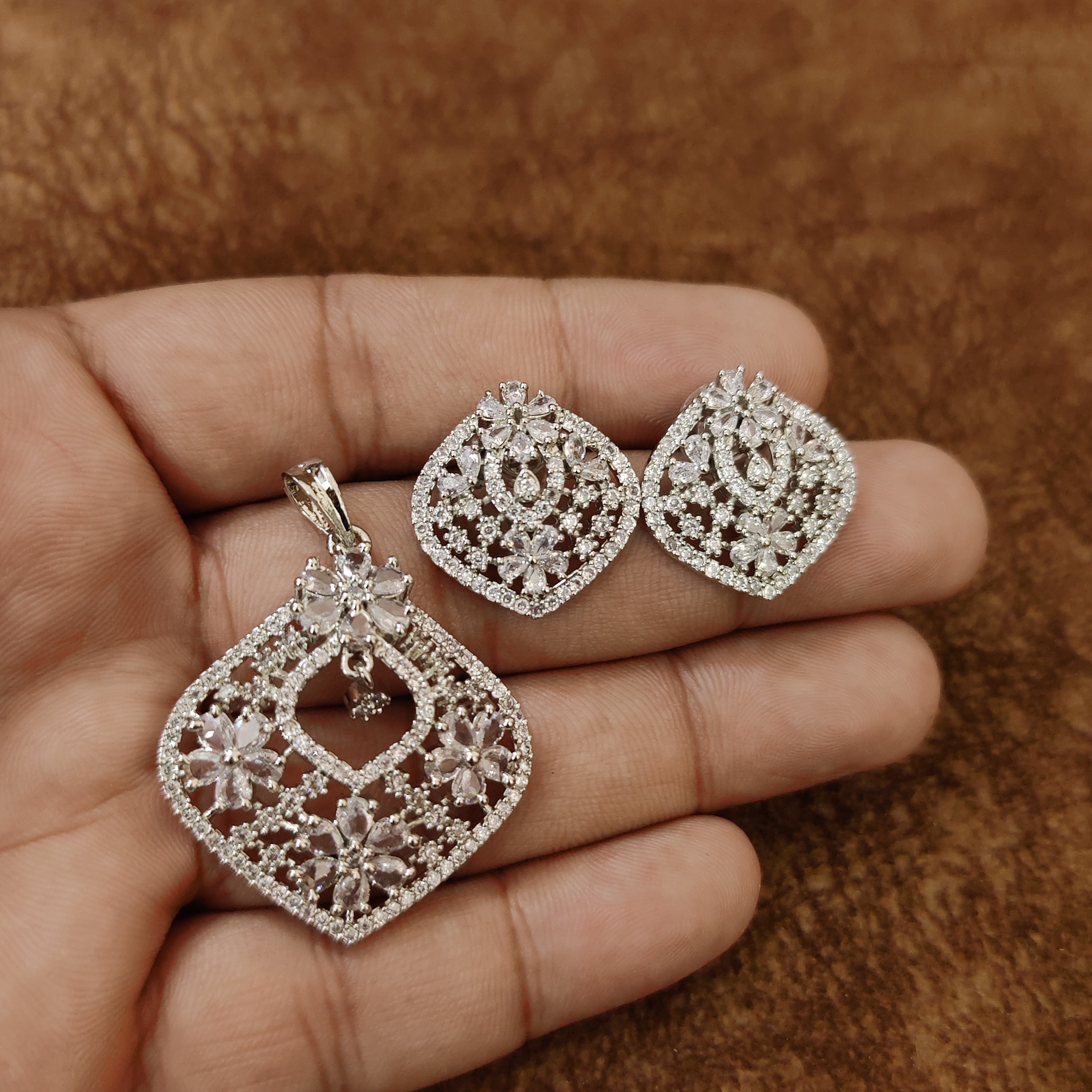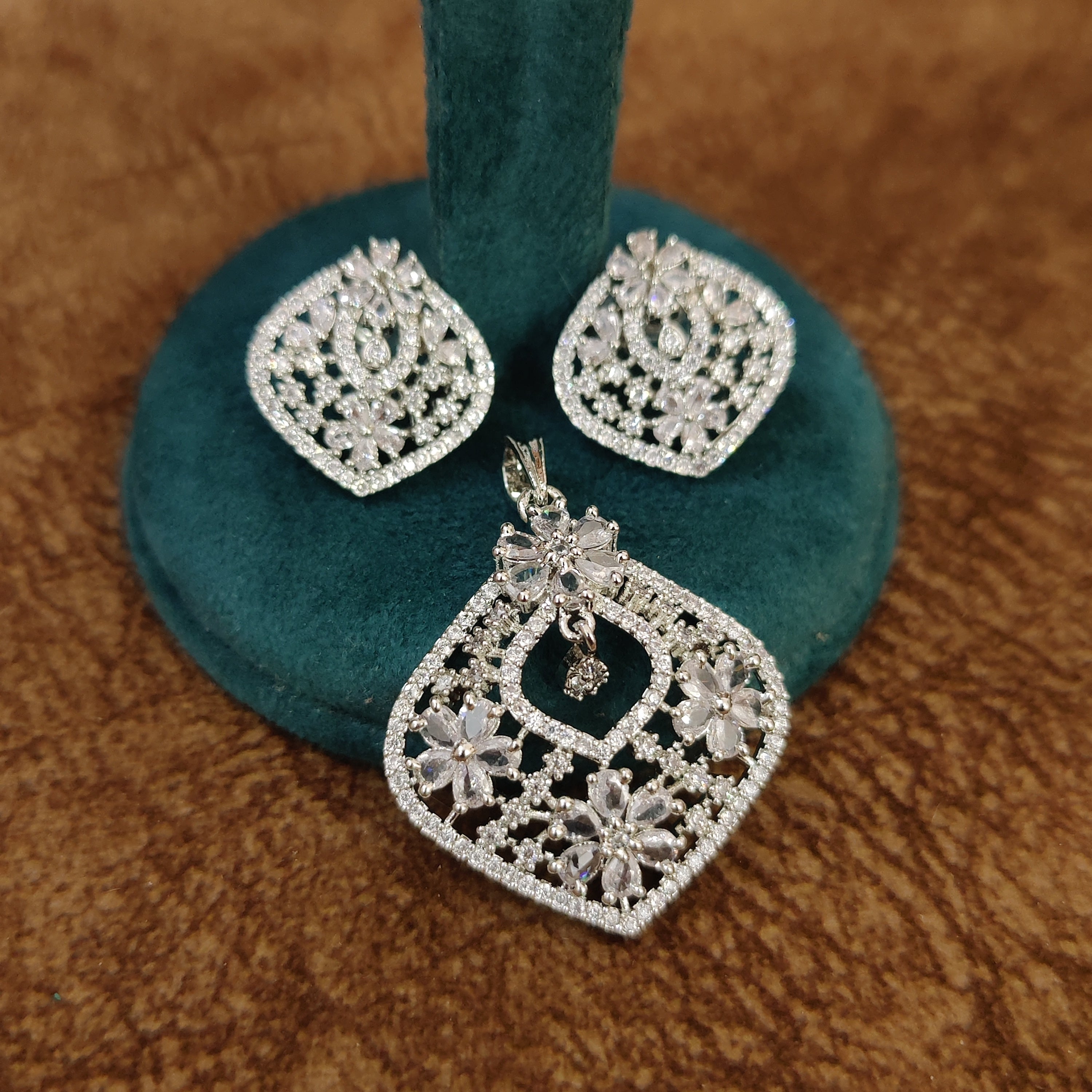 SILVER PLATED AD STUDDED MODERN PENDANT SET