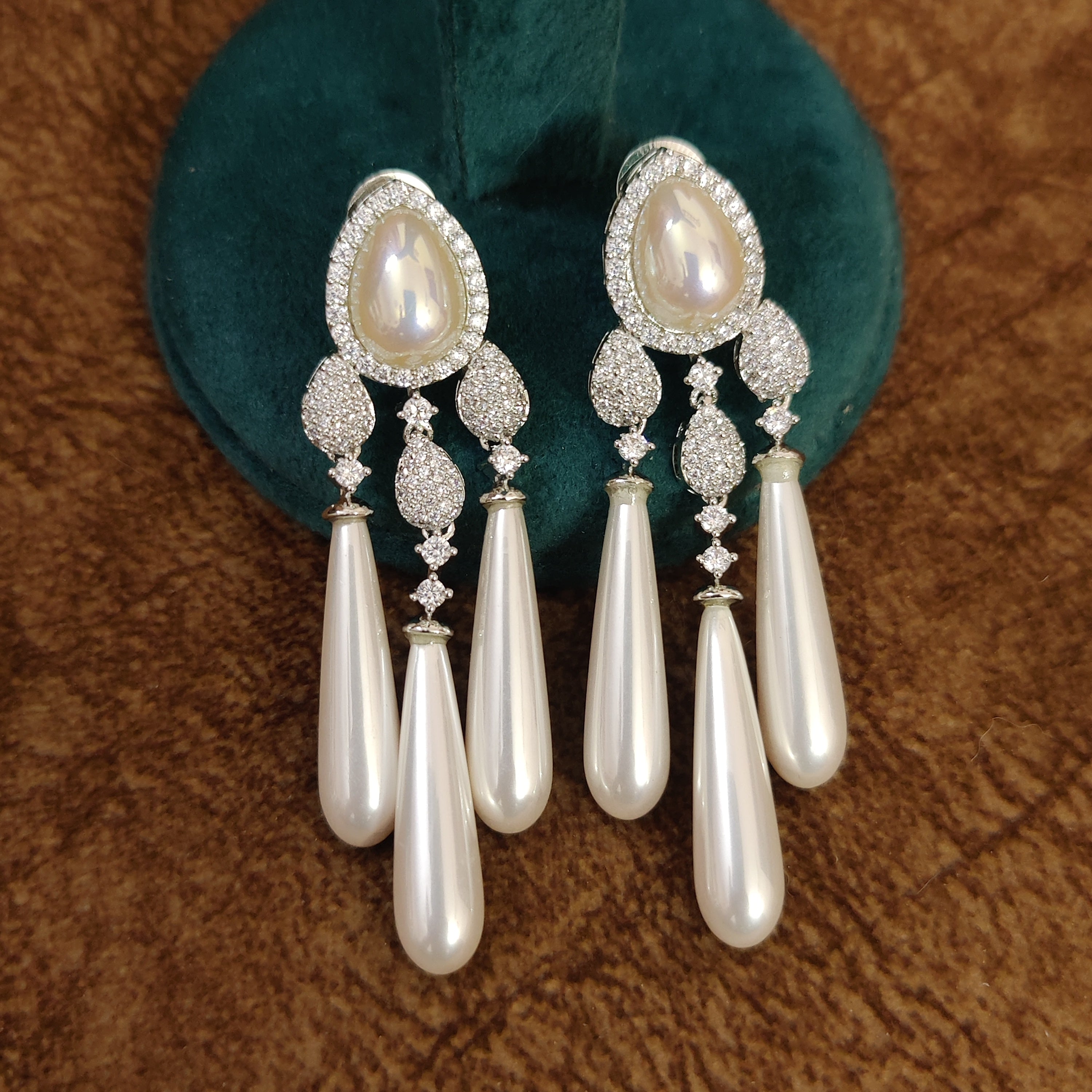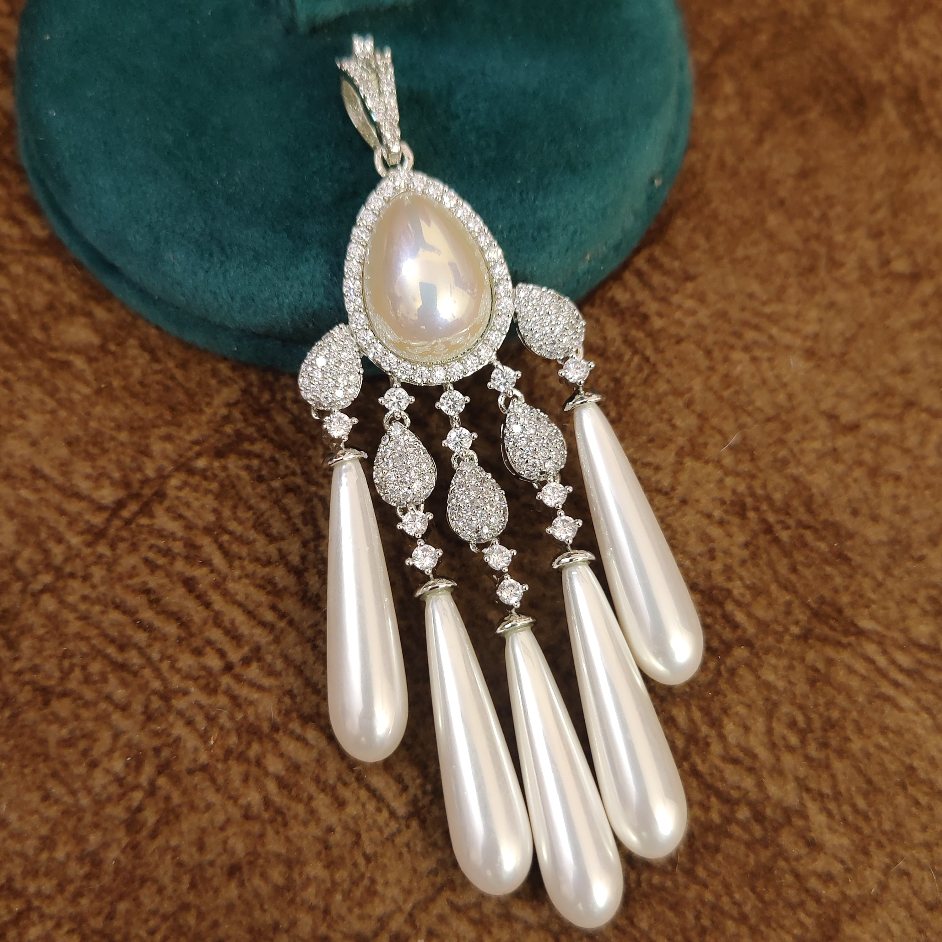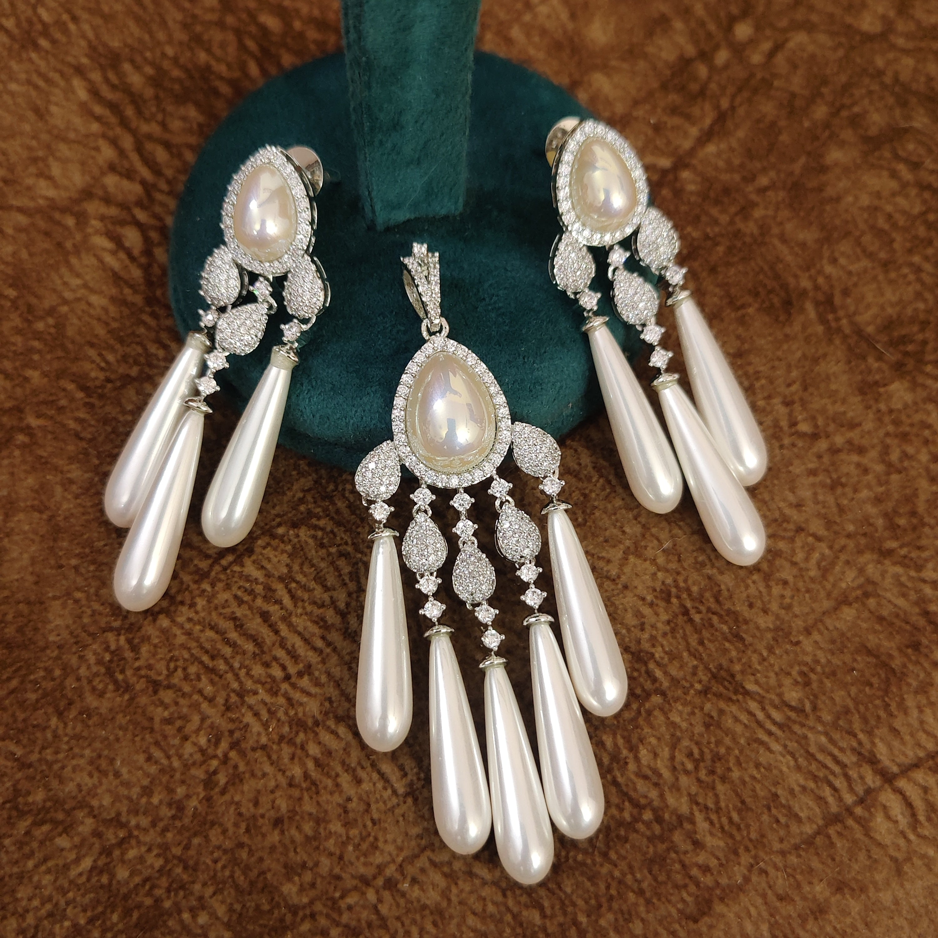 SILVER PLATED DESIGNER DANGLING PEARLS PENDANT SET