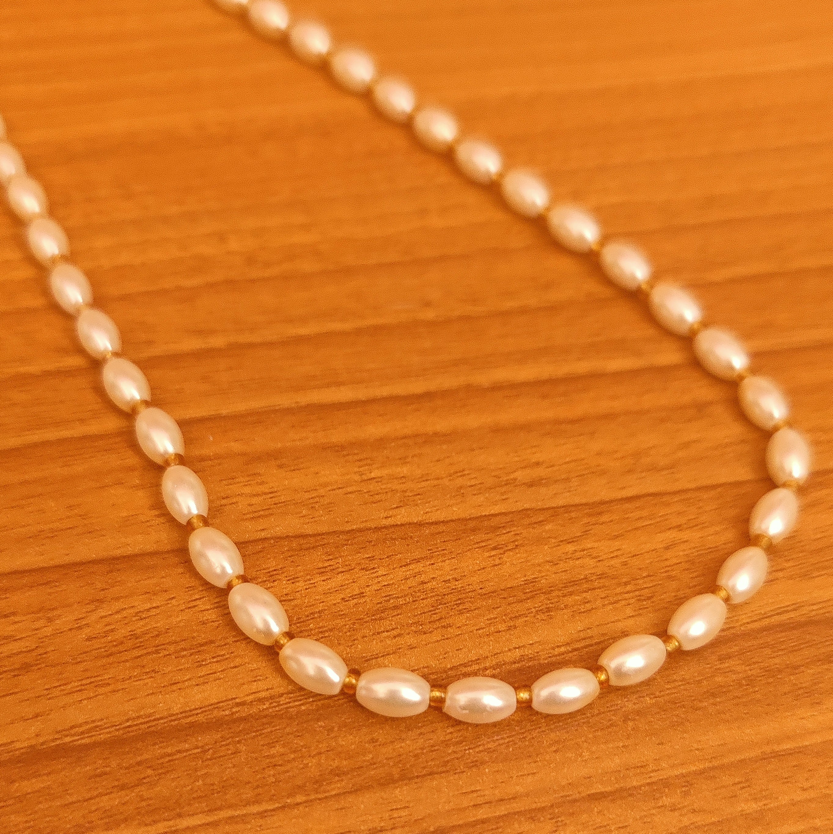 SINGLE LINE RICE SHAPED PEARL NECKLACE
