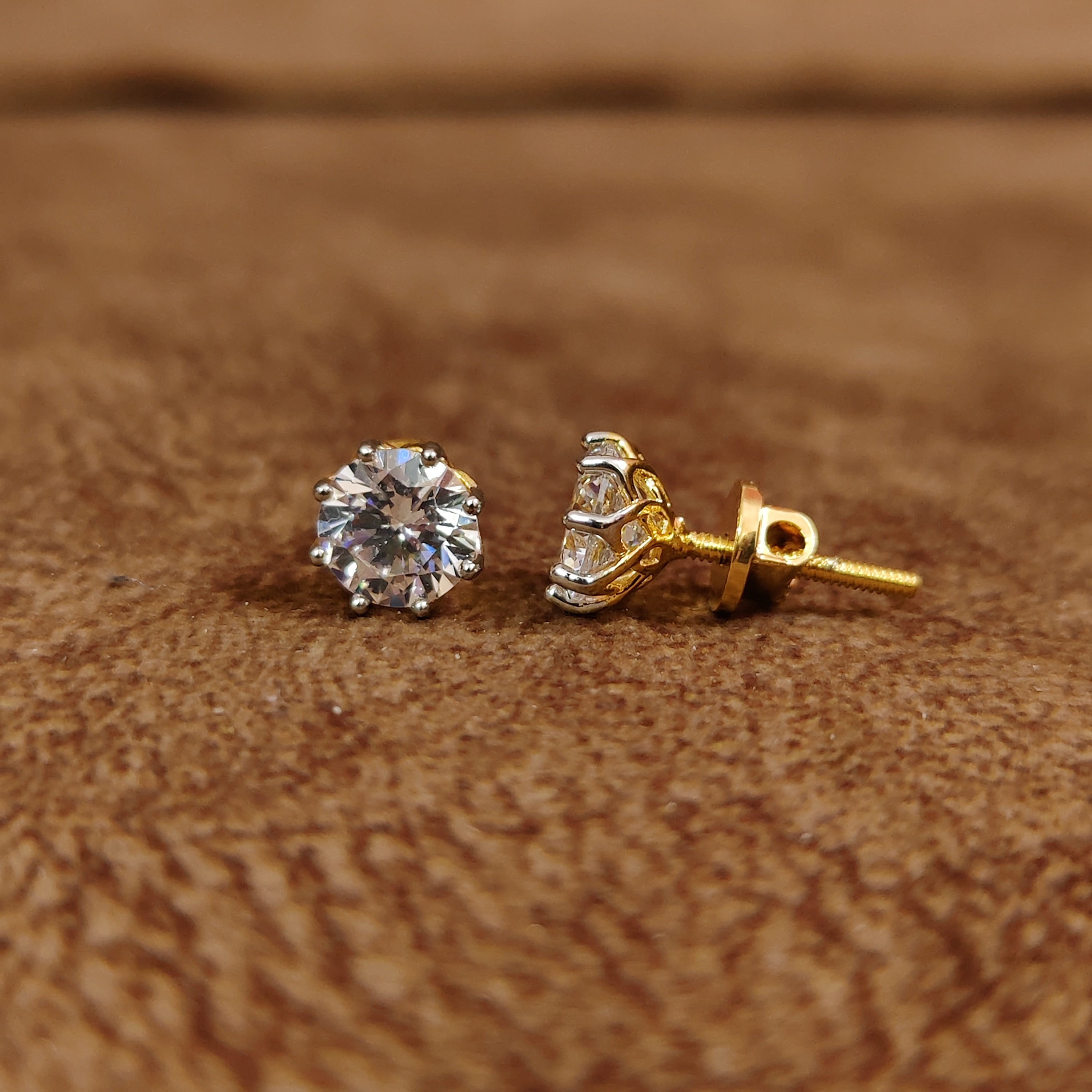 SOLITAIRE LOOK SCREW GOLD PLATED STUDS