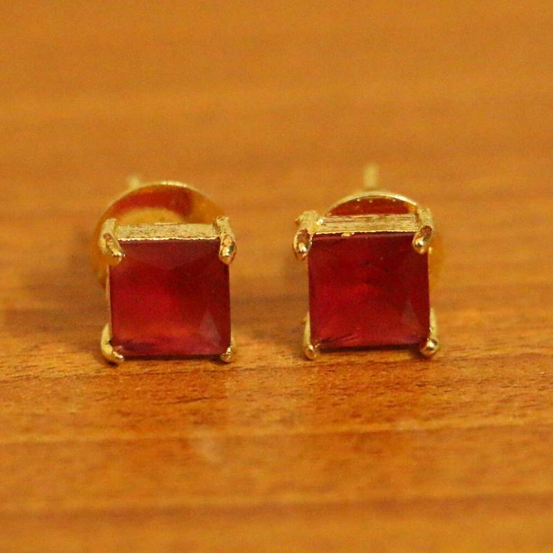 Square Shaped Gold Plated Ruby Studs