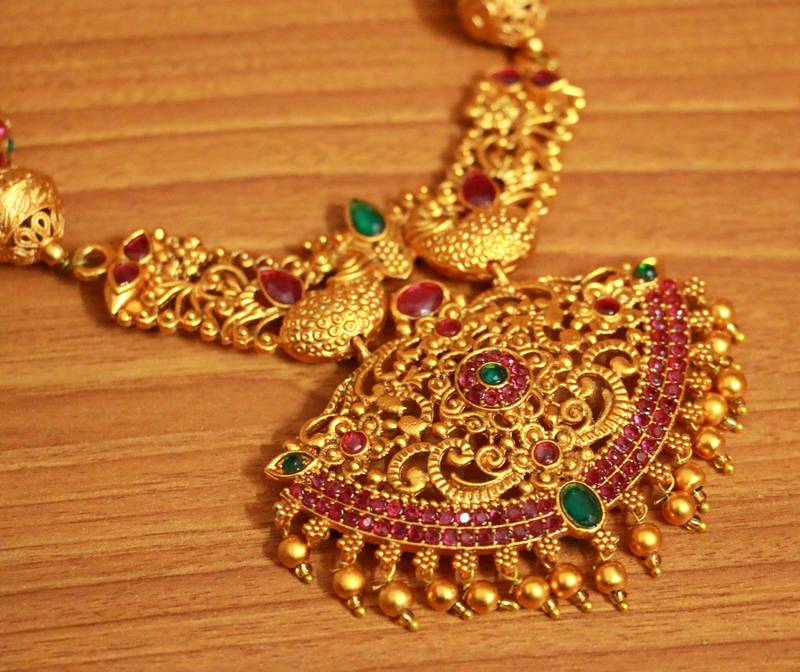 This necklace set is handcrafted in copper alloy with fine polki work of fine quality , the necklace set is plated with 18kt nickle free gold plating which gives it a real look .