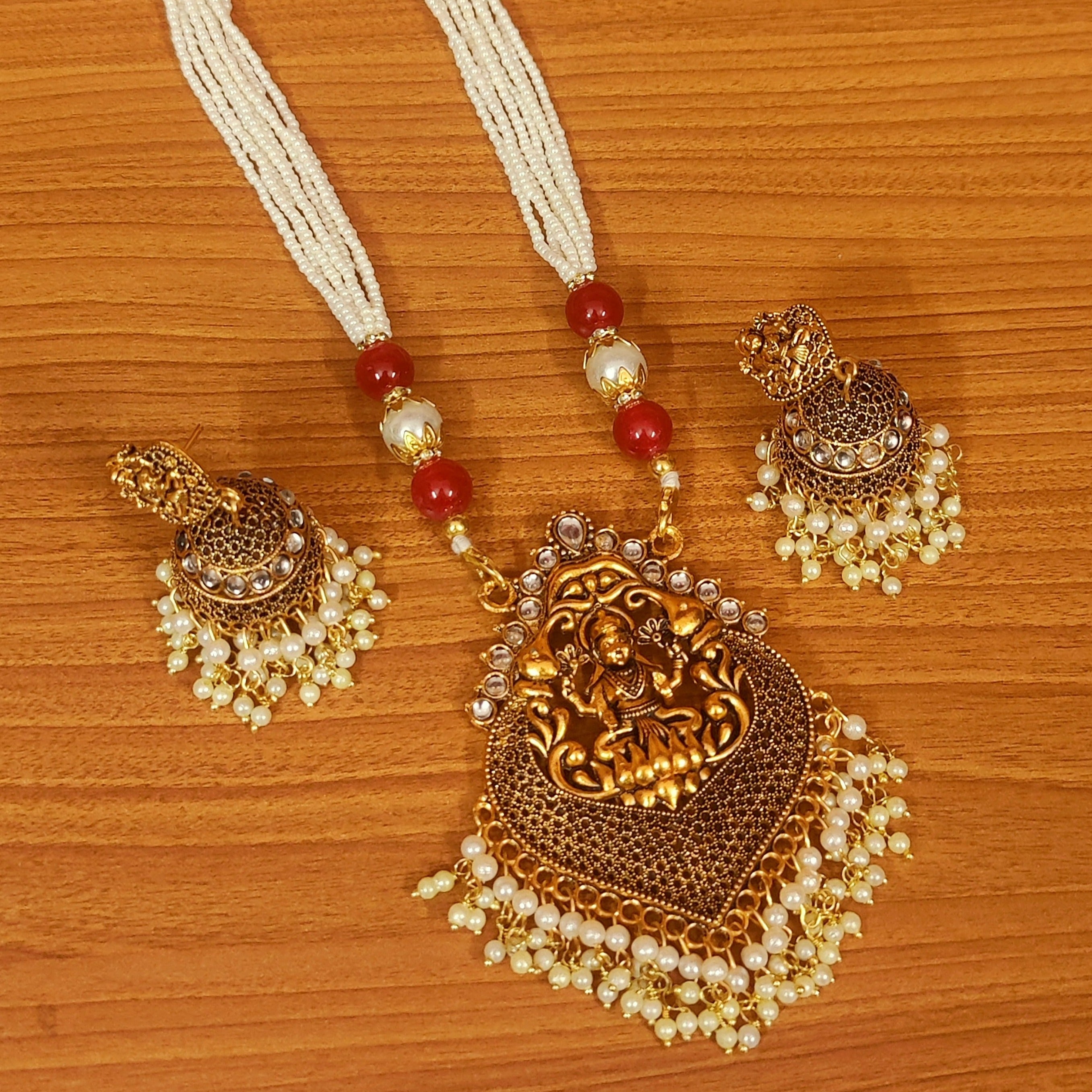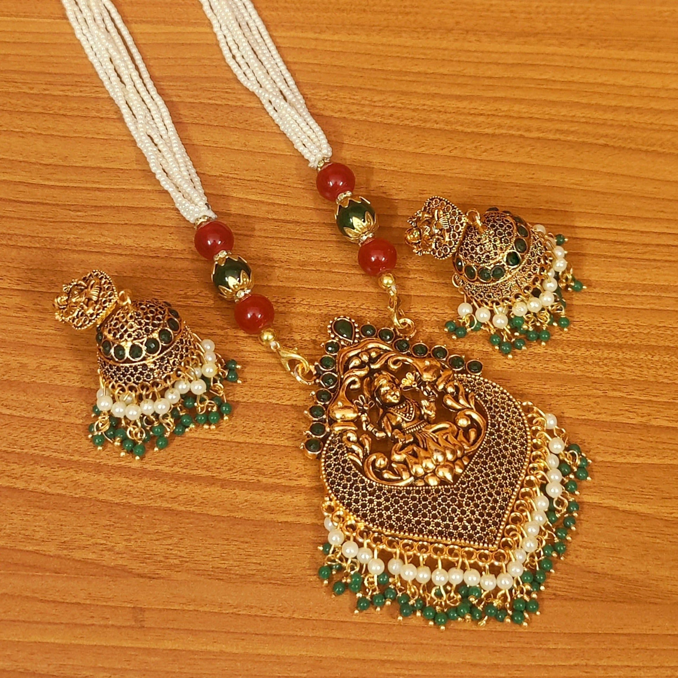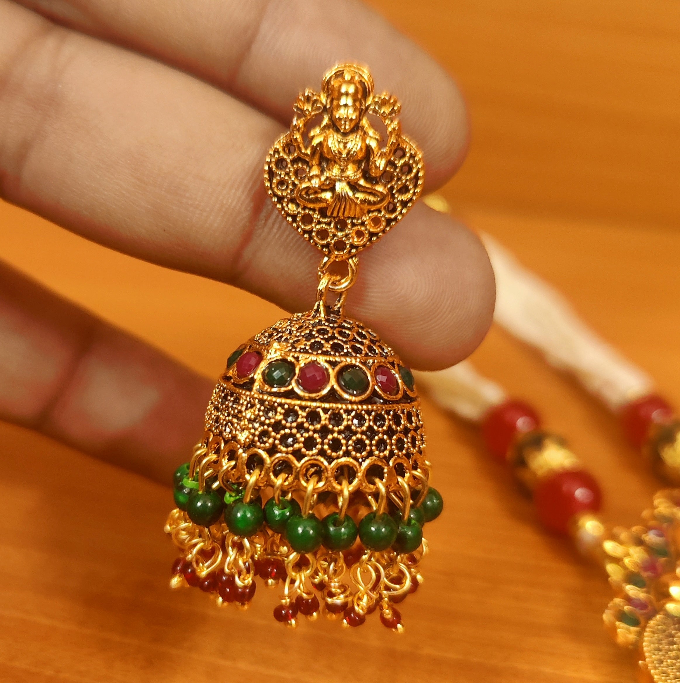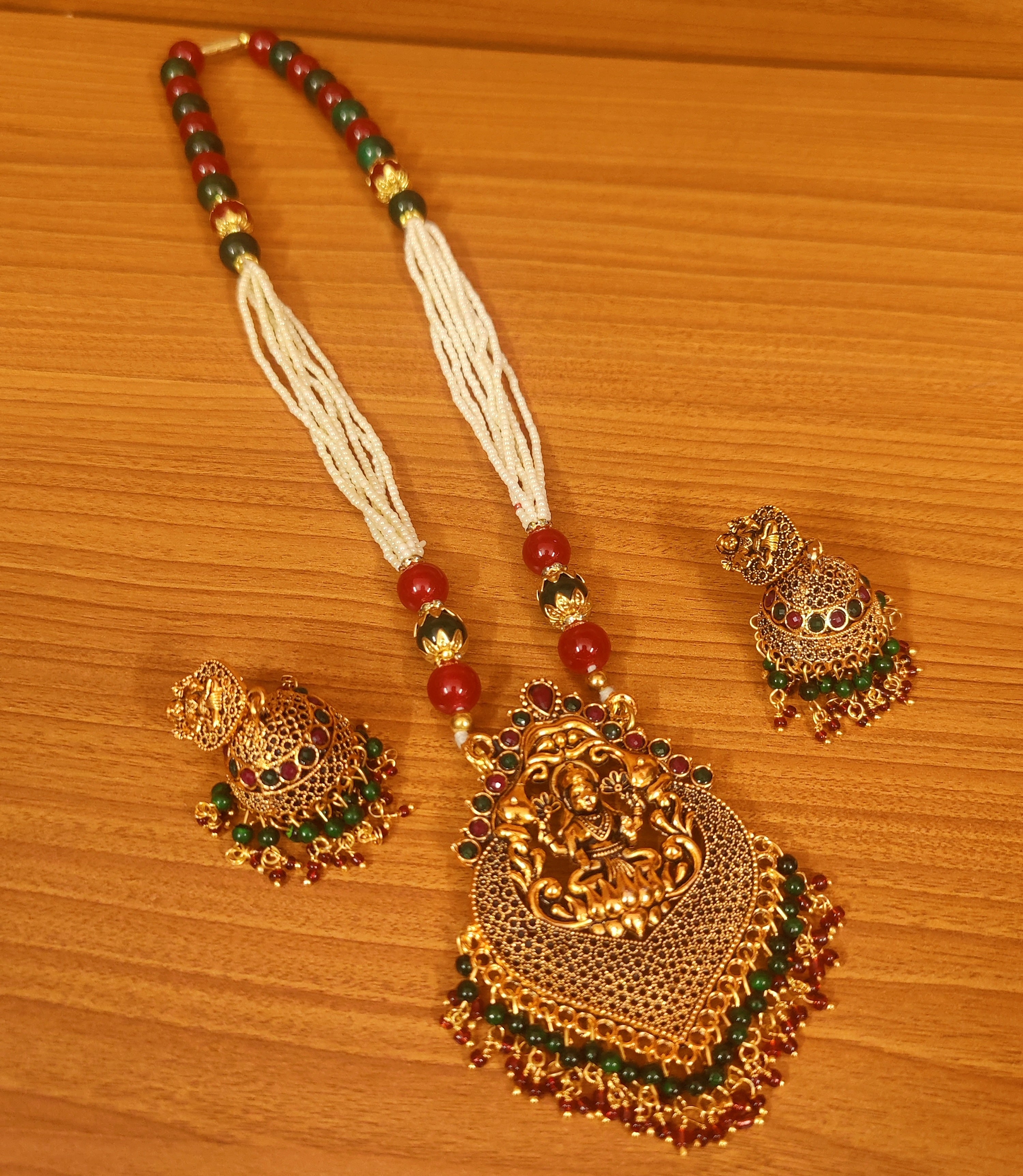 TEMPLE LOOK ANTIQUE GOLD PLATED MULTICOLOUR PENDANT SET