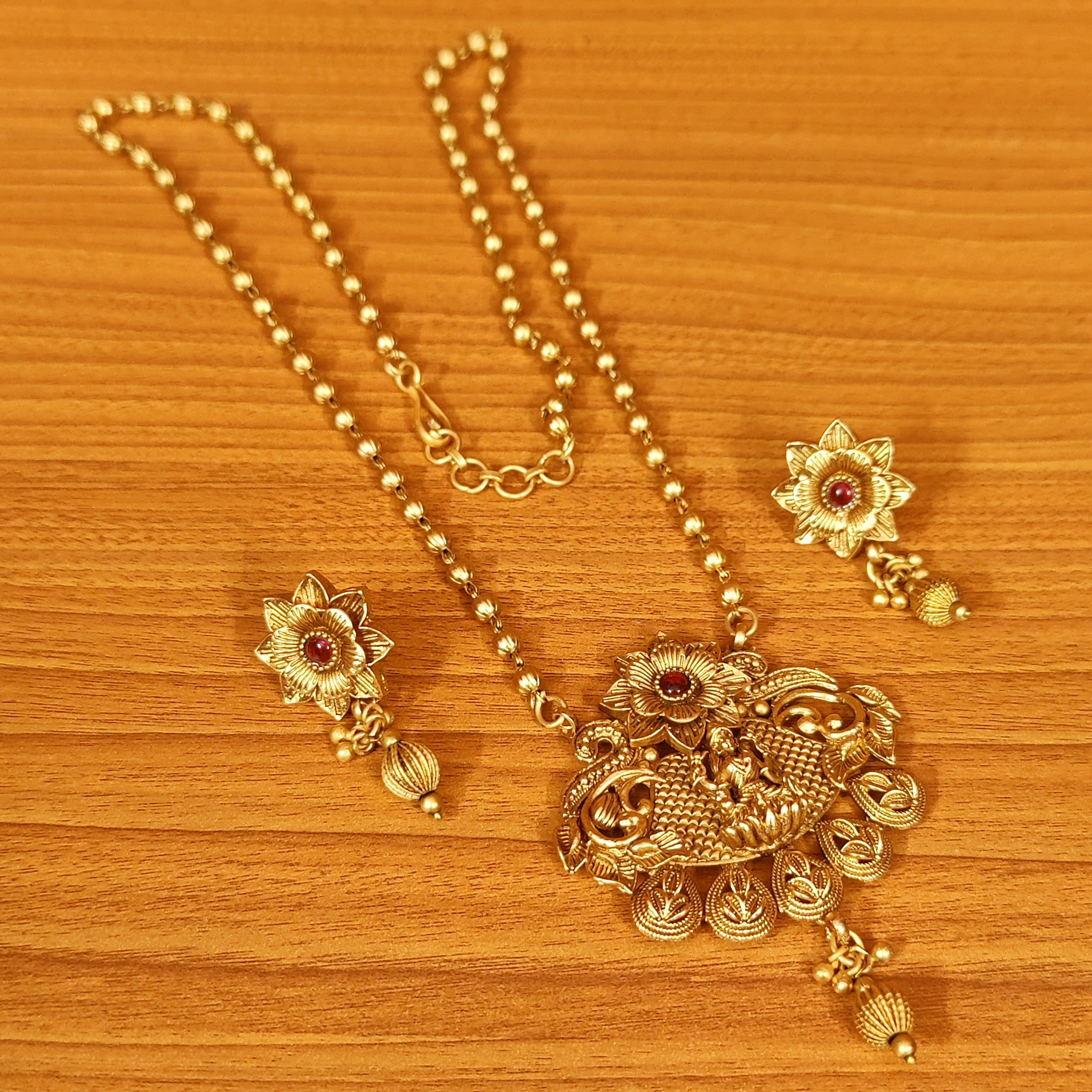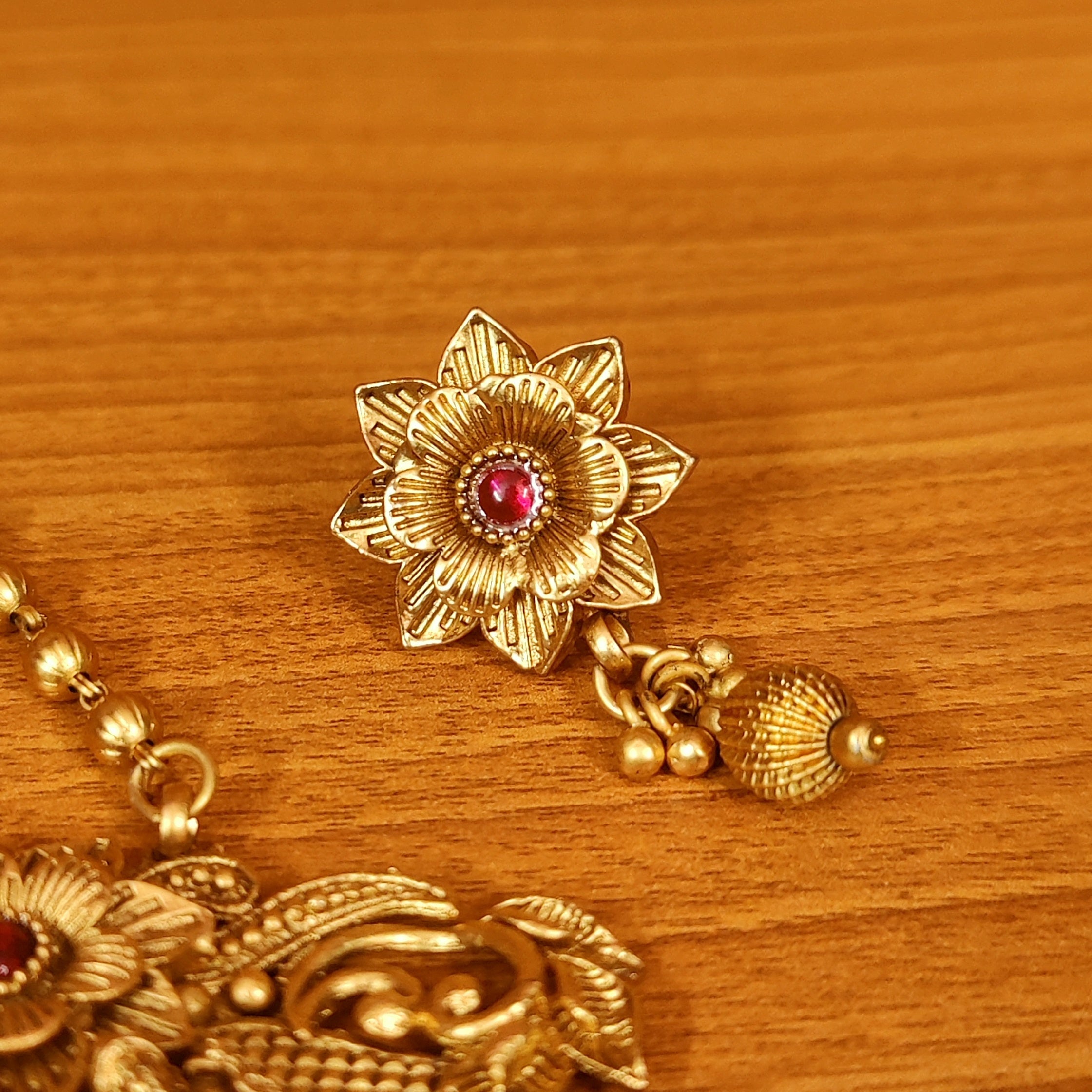 TEMPLE LOOK GOLD LOOKALIKE RUBY COLOUR PENDANT SET
