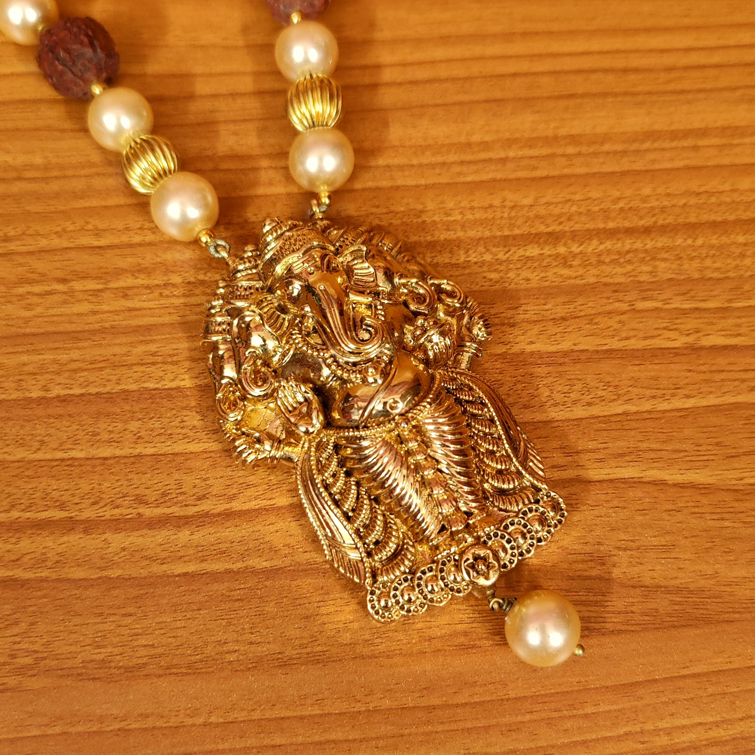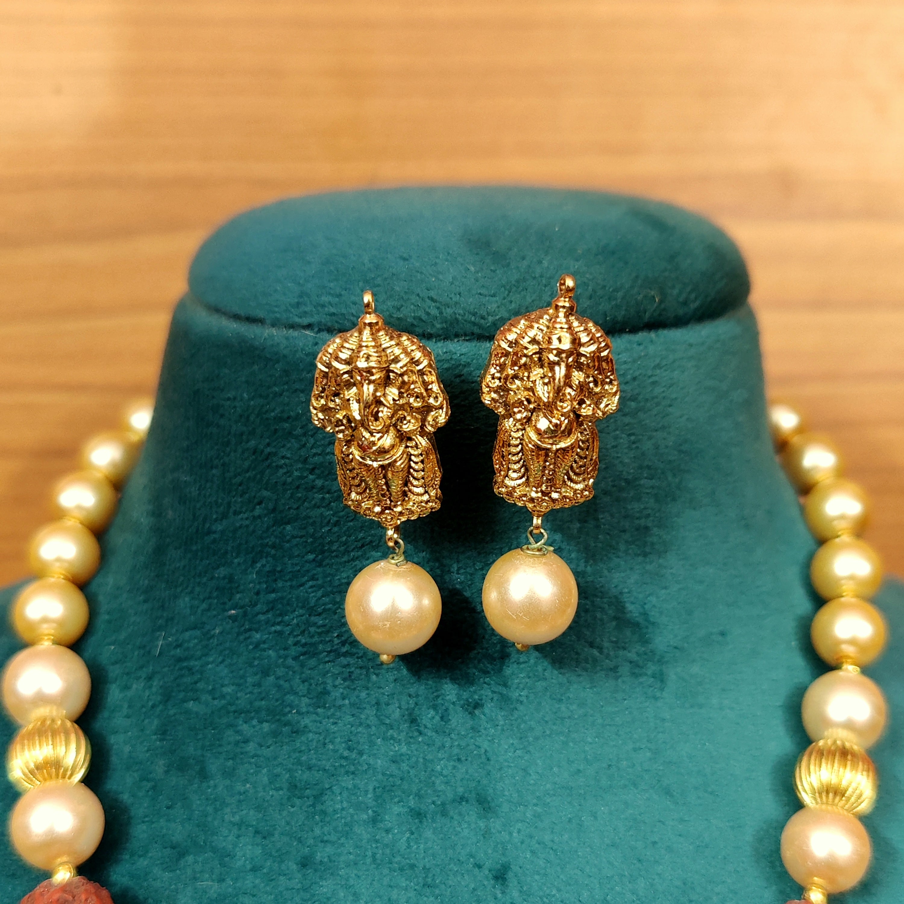TEMPLE LOOK PEARL & RUDRAKSH NECKLACE SET